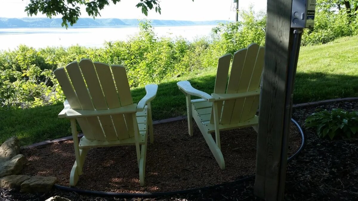 1 Schlafzimmer 1 Bad mit Loft. Gemütliches Zuhause, von dem aus du das Paradies sehen kannst. Diese tolle Unterkunft ist alles andere als gewöhnlich. Meilenweite Aussicht auf den Mississippi River, Klippen und du kannst mit den Adlern schweben. Was für ein Ort zum Entspannen im neu hinzugefügten Whirlpool, während du die Aussicht auf das genießt, was „Gottes Land“ genannt wird. Dies verspricht, eine einzigartige Aussicht zu sein. Das Deck mit bequemen Sitzgelegenheiten im Freien. Das Hotel liegt im Herzen der Driftless Region von Wisconsin. Neues Fitnesscenter für alle unsere Gäste.