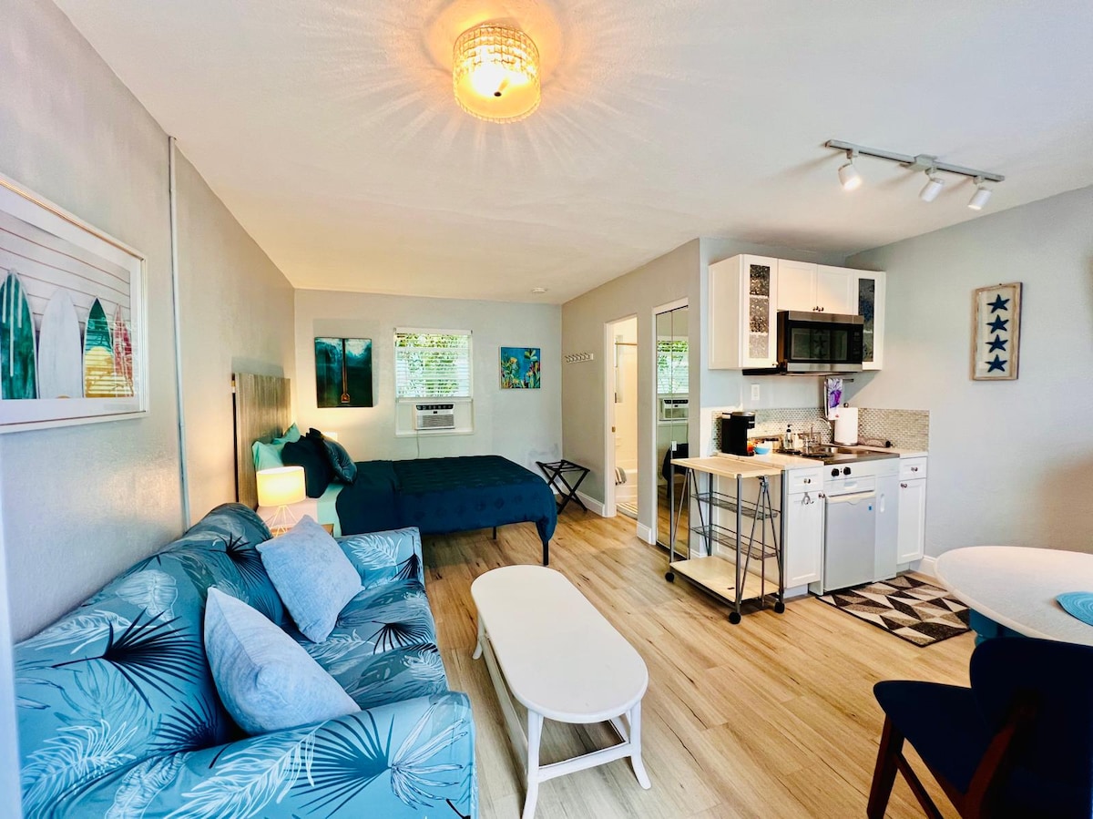 Klassisches, ruhiges und helles Studio im floridianischen Stil mit tropischem Flair und einem neu renovierten Badezimmer, nur wenige Schritte vom Intracoastal Waterway (Lakeworth Lagoon) und Lantana Beach entfernt. Fühle dich wie zu Hause und sei in Frieden in deinem eigenen privaten Studio, das ein komfortables KING-Size-Bett, einen 44-Zoll-Smart-TV (Roku), eine Kaffee- und Teestation und ein brandneues, wunderschön gefliestes und umgebautes Badezimmer in einer tropischen Gartenenklave im floridianischen Stil umfasst. Kostenlose Parkplätze! Und einfacher Zugang zum I95 Highway, Parks und Stränden.