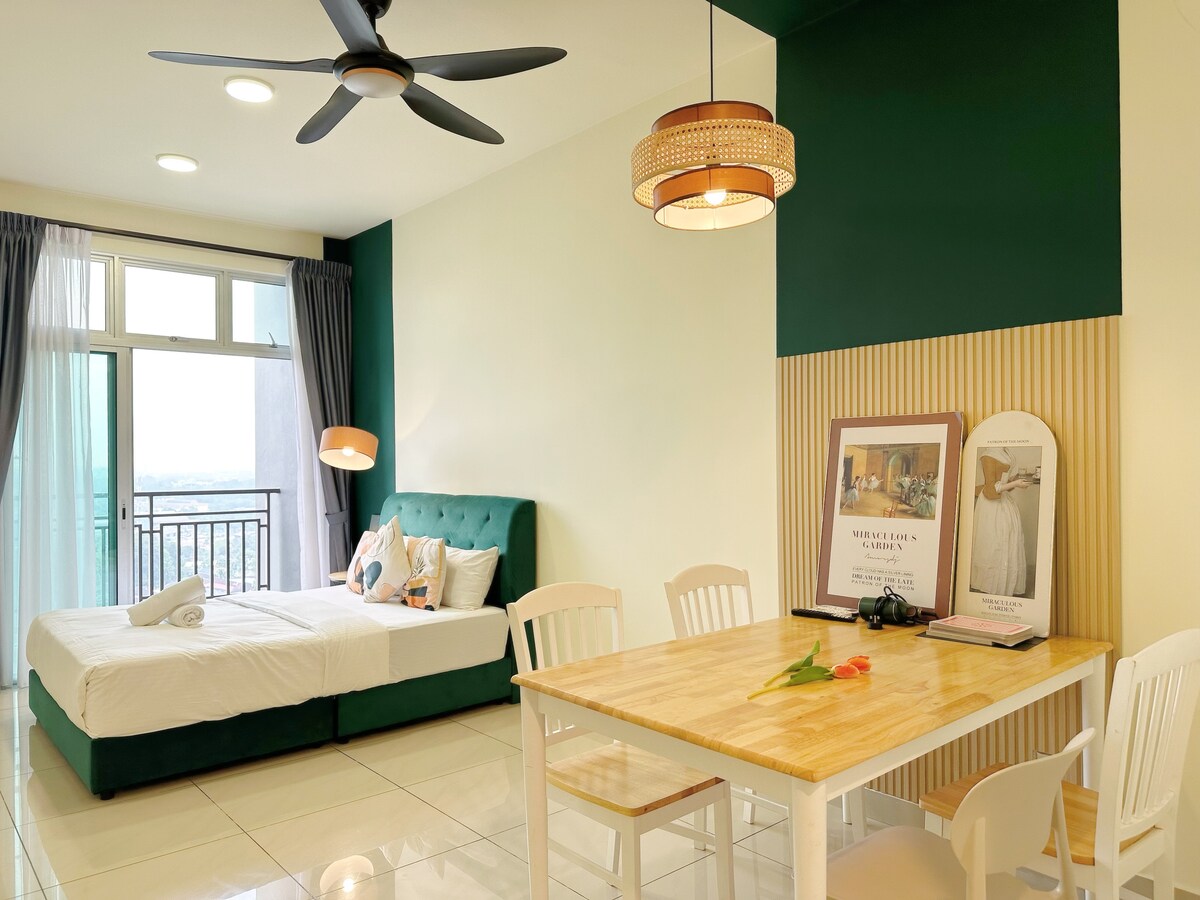 Willkommen in unserem gemütlichen, minimalistischen Studio für 2 Personen!! ❤️ Unsere Lage ist im Herzen von Johor Bahru Stadt nur 5 Minuten vom CIQ-Kontrollpunkt 🚗 Es ist sehr gut geeignet für Paare, kleine Familien, Geschäftsreisende oder Touristen 🌹 Unsere Einheit mit schönem Blick aus der oberen Etage, die einen ungehinderten Blick auf die Stadt JB bietet 🥰 Und dieser Ort ist auch von praktischen Geschäften umgeben, in der Nähe des Nachtlebens, öffentlicher Verkehrsmittel, schöner Essensbereiche, Massagezentrum, Restaurant, Einkaufszentrum 🌻 usw. Komm und genieße ^^