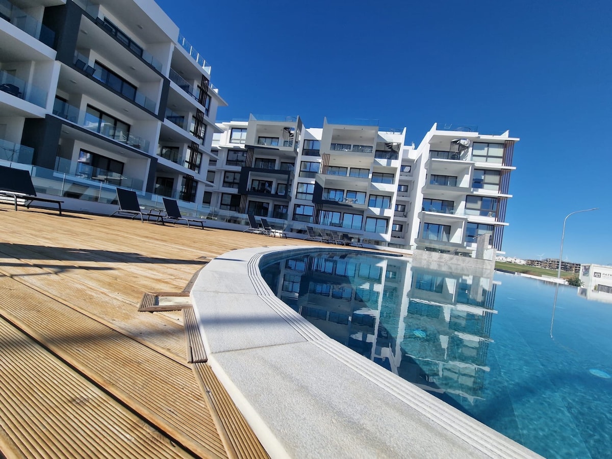 Genieße ein stilvolles Erlebnis in diesem neu gebauten, zentral gelegenen Ort in der New Marina Area, in der Nähe von allem. Das Meer ist innerhalb von 5 Minuten Fahrt und 20 Minuten zu Fuß entfernt. Es ist immer vorzuziehen, ein Auto zu mieten - Schwimmbad - Kostenloses WLAN - Zugewiesener überdachter kostenloser Parkplatz - Voll möbliert - Voll ausgestattete Küche (Kühlschrank, Mikrowelle, Wasserkocher, Nespresso-Maschine, Filterkaffee, Toaster, Elektroherd/-kocher) - Waschmaschine - Fernseher mit Netflix verbunden - Überdachte Veranda - eigenständiger Check-in