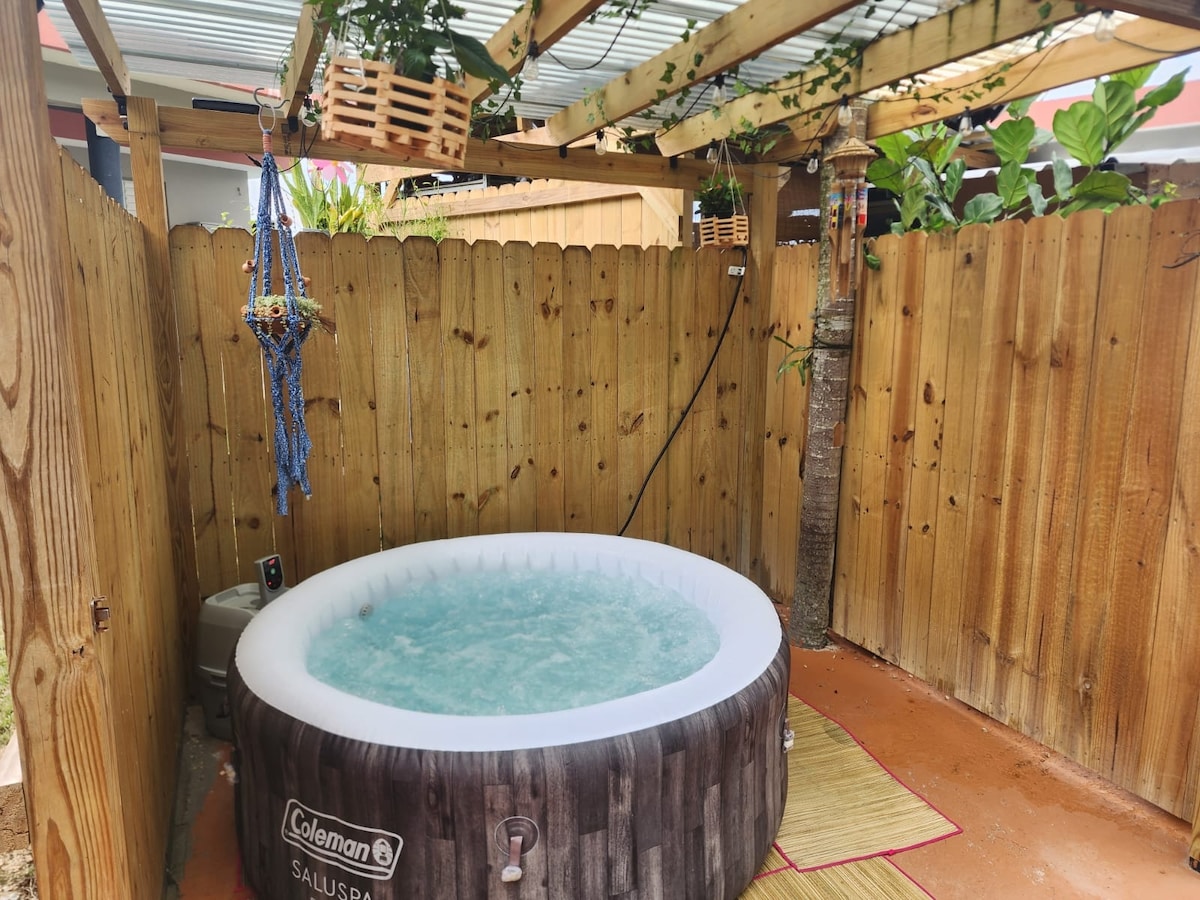 Entspanne dich und schalte ab in dieser wirklich einzigartigen und ruhigen Unterkunft. Dieses schöne private Ferienhaus für Paare in der Stadt Adjuntas verfügt über einen atemberaubenden Naturpool, einen privaten Wasserfall, grüne Dächer, eine entspannende Warmwasserwanne (mit Holzfeuer beheizt) und exklusiven Zugang zum Tanama River. Mit mehr als einer Meile an Wanderwegen, um deinen Geist zu befreien, verspricht es ausgezeichnet zu sein für dein Wandern, Schwimmen und Erkunden und den Genuss der Natur!