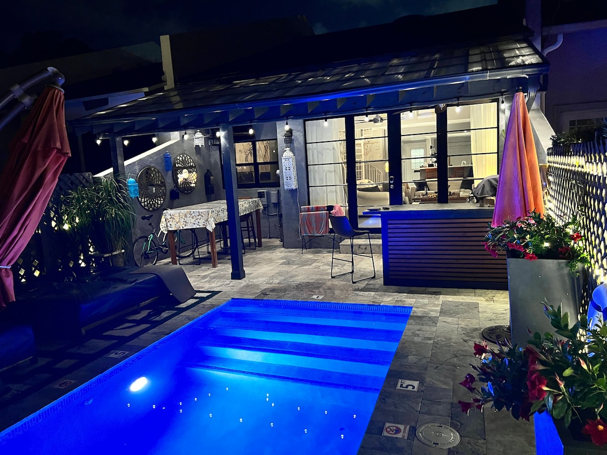 Welcome to your private Oasis —where sunny days and warm nights come together. Enjoy a heated pool, hot tub, and a beautiful backyard with gazebo, outdoor TV for movies or music and al fresco dining. Spend your days swimming, grilling, or exploring with kayaks, then unwind under the stars in total privacy. Inside, the home is bright, stylish, and designed for comfort—perfect for families, couples, or small groups. Located close from Las Olas, beaches and dining Circuit Rides available