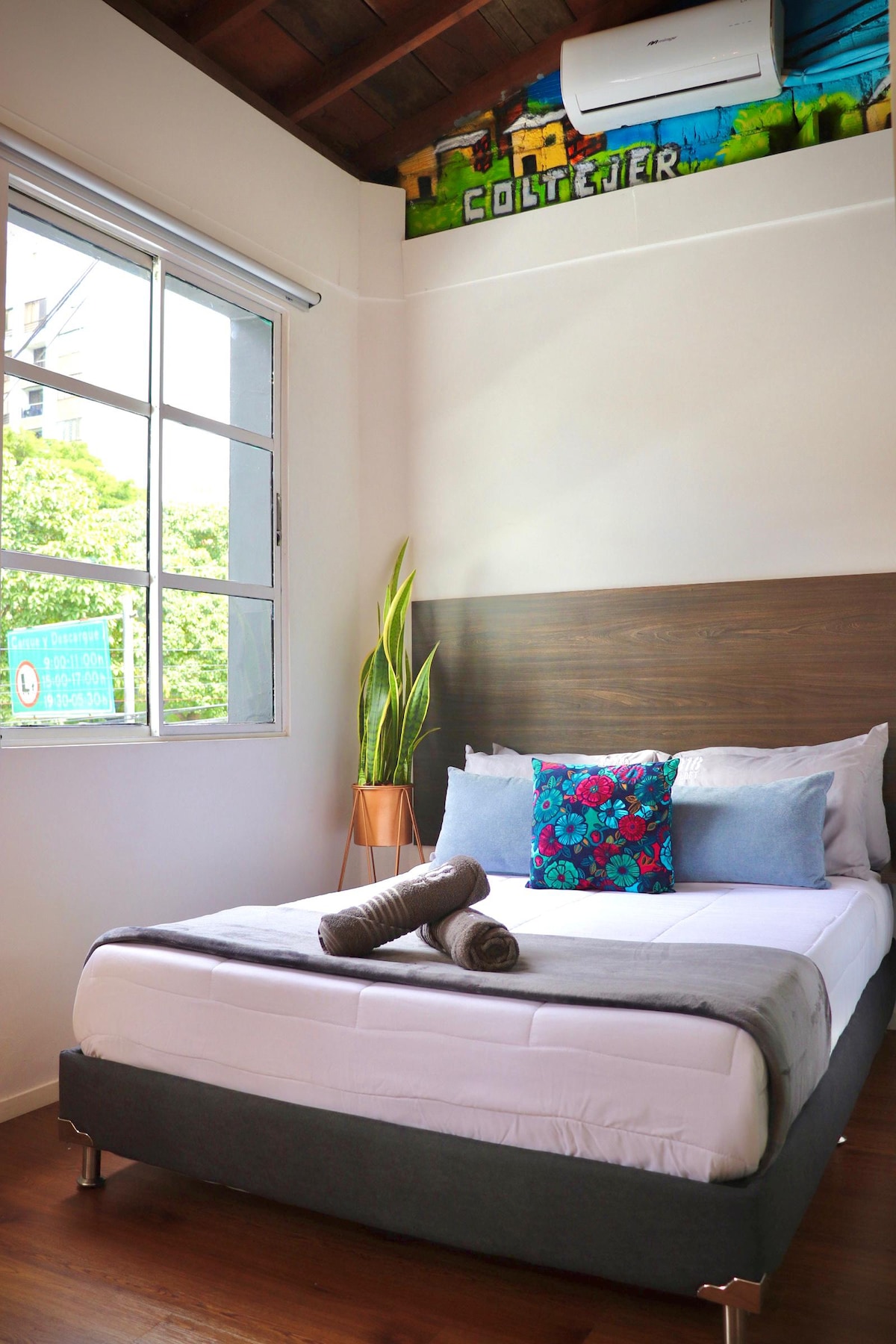 Willkommen im 818 District, unserem Boutique-Loft, das eine Mischung aus Charme und modernem Komfort bietet. Dieses Loft ist mit allem ausgestattet, was du für einen gemütlichen Aufenthalt benötigst, mit Highspeed-WLAN, Klimaanlage und einem eigenen Badezimmer - perfekt zum Entspannen. Genieße ein bequemes Doppelbett, einen Flachbildfernseher und ein hängendes Regal für deine Grundausstattung. Im Herzen von Laureles gelegen, bist du nur wenige Schritte vom pulsierenden Nachtleben, Restaurants und Kultur entfernt. Ideal für Alleinreisende, Paare oder Geschäftsreisen, die etwas Einzigartiges suchen.