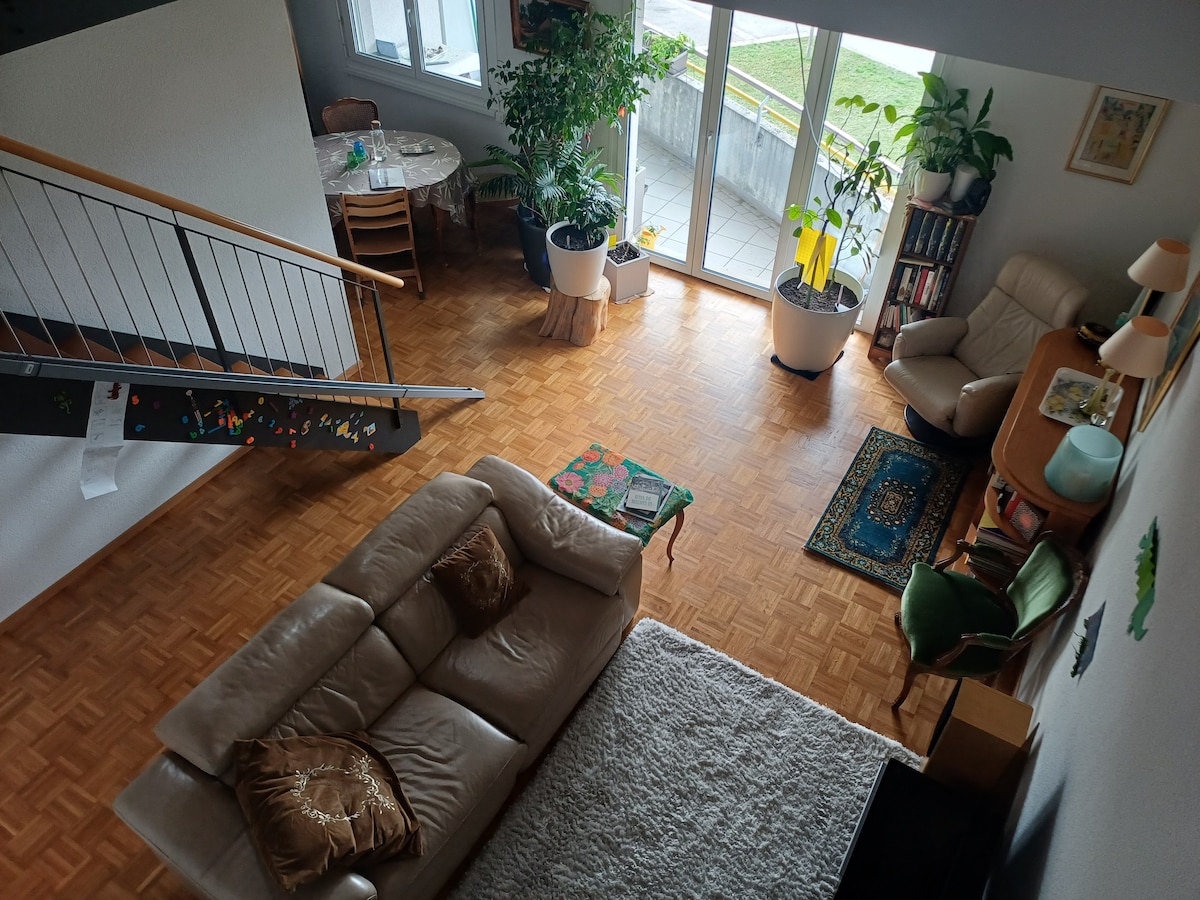 3.5 room penthouse occupying the top floor located in a 3600 m2 park in Jouxtens-Mézery near Lausanne. The charm, the character and the breathtaking view of Lake Geneva and the mountains will definitely seduce you! The apartment consists of a living room with a balcony, a kitchen open to the dining room, two bedrooms and a bathroom. All renovated with very high quality materials. One parking space & various services (Cleaning, Laundry, Storage, …) related to living complete the offer.