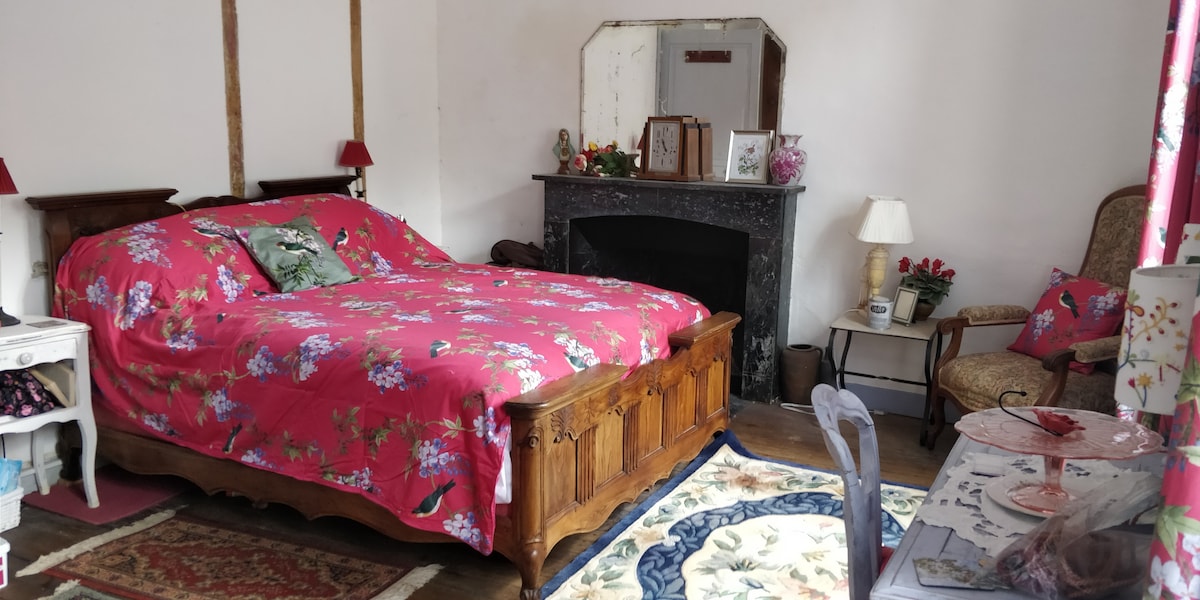 Sie werden die elegante Einrichtung dieser charmanten Unterkunft lieben. Ihr Zimmer befindet sich im zweiten Stock, mit einem eigenen Bad. Ein Raum für die Zubereitung Ihrer Mahlzeiten ist den Mietern vorbehalten. Wir können Ihnen auch Ihr Mittag- oder Abendessen für 14€/Pers(Aperitif im Café und ein Glas Wein) und Frühstück 6€/Pers anbieten. Im Sommer stehen Ihnen ein Tisch, Liegestühle im Garten und ein Pool (nach Zeitplan) zur Verfügung Möglichkeit 1 oder 2 zusätzliche Zimmer zu 19 €/und 15 €/Zimmer