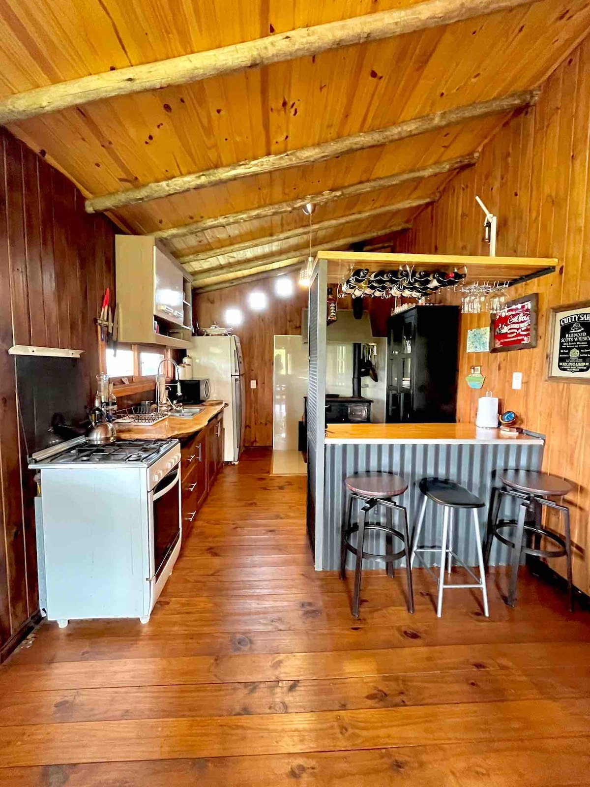 Un cabaña completa, cálida, acogedora en lugar de hermoso silencio y vista al verde. Estufa a leña de alto rendimiento que la hace calentita en el invierno y un sistema de circulación de aire que la hace fresca en el verano. LA LEÑA NO ESTÁ INCLUÍDA! Sí se incluye: Vajilla completa Utensilios para cocinar Electrodomésticos Estufa eléctrica Secador de pelo Ropa de cama y toallas El baño tiene una hermosa bañera antigua con vista a las sierras y una cuidada conjunción de nuevo y antiguo.