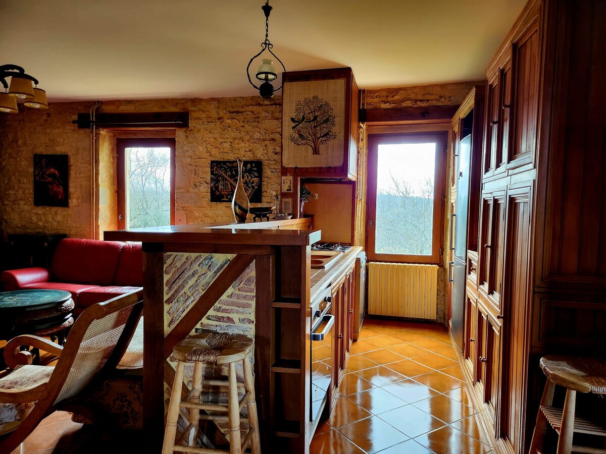 Véritable coin de paradis Protégée par le calme de la forêt au coeur du triangle d'or, cette authentique périgourdine est située dans un hameau magique à 15 min de Sarlat. Rare et atypique, cette maison est mon trésor ! ⚠️2 chats adorables sont à nourrir lors de votre séjour. Très reconnaissants avec les hôtes, ils ramenent parfois des "cadeaux" (oiseaux, mulots) … À 2km du célèbre et somptueux château de Beynac. Pensez svp à emmener vos draps, housse de couette et taies d’oreiller, lit160