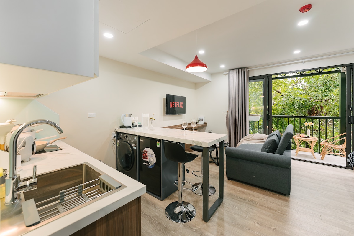 Genieße das Beste, was Hanoi zu bieten hat, in unserer bezaubernden Wohnung in einem historischen Hanoian-Gebäude am äußeren Rand der Altstadt, nur einen kurzen Spaziergang vom HOAN KIEM SEE, der BIERSTRASSE und dem OPERNHAUS entfernt. Schalldichte Fenster, ein belebter Balkon, 50-Zoll-Fernseher (mit Netflix), ein gut ausgestattetes und geräumiges Badezimmer sind nur einige der Hauptmerkmale der Wohnung. Waschmaschine/Trockner (kostenlos), Arbeitsecke steht auch zur Verfügung. Bitte zögere nicht, dich jederzeit an uns zu wenden, falls du Fragen an uns hast 😊