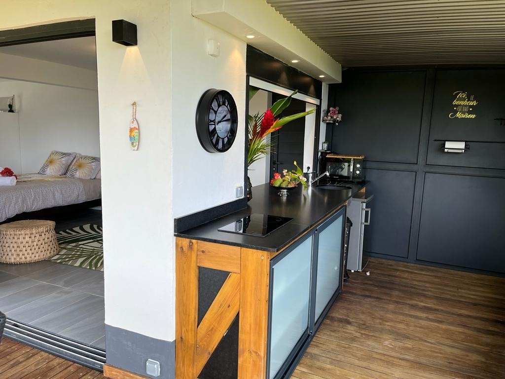 Für einen authentischen Urlaub in Guadeloupe in einer ruhigen Umgebung, schönes geräumiges Studio, modern, klimatisiert und komfortabel, bestehend aus einem großen Wohnzimmer, angrenzendem Bad, Einbauküche auf hölzerner Hängeterrasse. Hochwertige Bettwäsche 160, Bettwäsche und Handtücher sind vorhanden. Entspannungsecke und Garten, ideal für künstlerische Kreation, Musik, Lesen, Meditation. Meerblick, Strand von Petit-Havre in kurzer Entfernung zu Fuß erreichbar. In der Nähe aller Annehmlichkeiten Privater Parkplatz