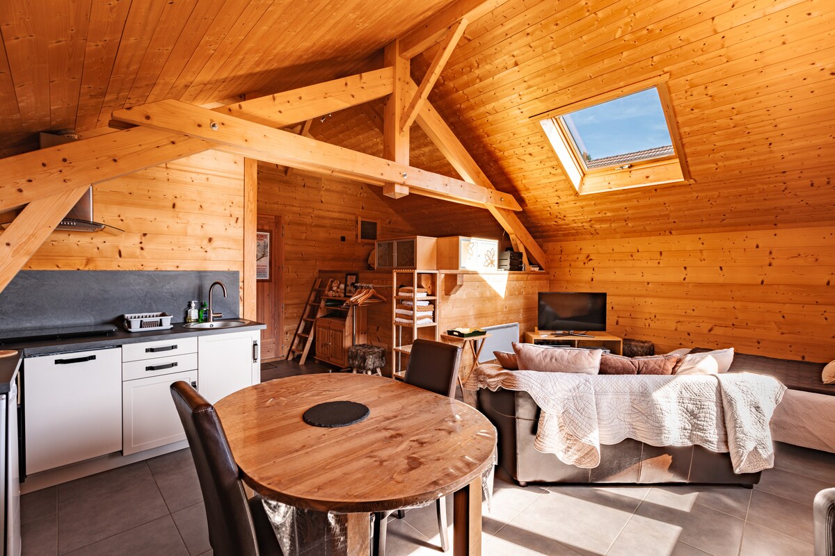 Studio de 20 m² très fonctionnel à 15 minutes du Grand Bornand (accessible en bus / avec les skis), 20 minutes de la Clusaz, 30 minutes de Genève et Annecy. Situé au cœur du village du Petit Bornand, au 1er étage d'une maison, avec balcon et accès indépendant. Juste à côté, 1 boulangerie, 1 épicerie, 1 pizzeria, 1 restaurant, 1 station service. Il est composé d'une pièce de vie avec 2 couchages doubles (1 lit double en hauteur et 1 clic clac), 1 cuisine équipée, 1 SDB avec douche et WC.