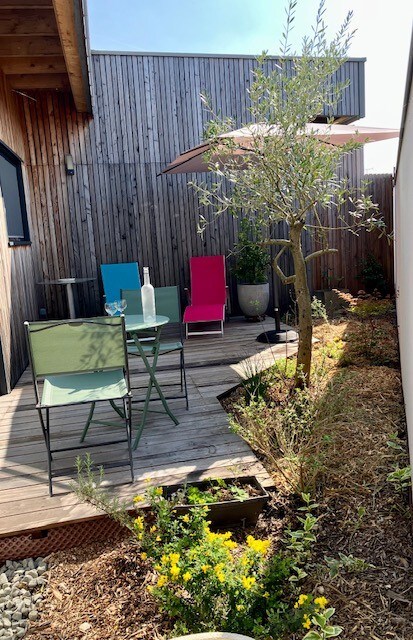 Gîte de charme contemporain très lumineux, de plein pied donnant sur une terrasse privative végétalisée avec une belle exposition au soleil. Détendez vous dans ce gîte élégant, avec entrée et parking privatif. Chambre avec lit 160/200 (linge de lit fourni) salle d'eau, à disposition gel douche, shampoing, sèche cheveux, drap de bain fournis et toilette indépendant. Cuisine équipée, (four, plaque de cuisson, réfrigérateur, bouilloire, machine à café, grille pain, lave vaisselle, micro onde )