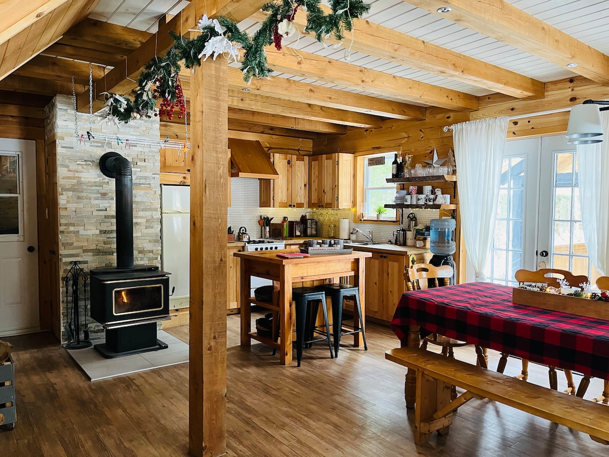 Refuge rustique unique en son genre parfait pour décrocher du quotidien. Pas de reseau cellulaire ***WI-FI haute vitesse*** Sans eau courante (nous fournissons l'eau selon vos besoins pour faire vaisselle et laver mains) avec électricité, poêle à bois ( bois fourni interieur en saison froide octobre a avril ) et toilette compost foyer extérieur : nous fournissons de la croute de cèdre pour les feux exterieurs. il est interdit d'utiliser le bois intérieur pour faire des feux extérieurs.