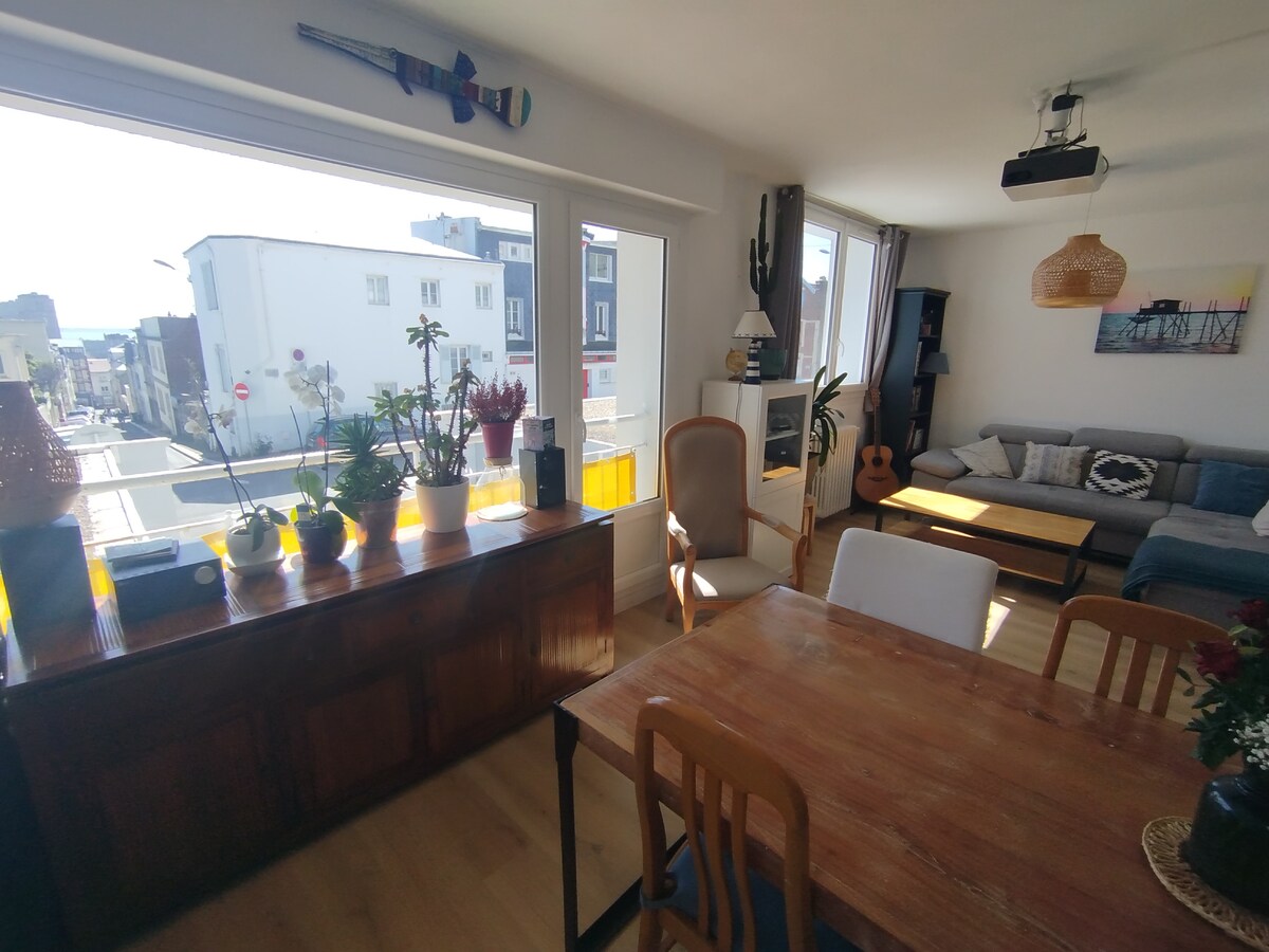 Installez-vous au dernier étage, laissez la mer entrer chez vous et profitez de Villers à pied. Au dernier étage avec escaliers, deux balcons pour déjeuner, dîner, entièrement rénové avec vue mer, à 50 m de la plage, à 2 mn du centre ville à 5mn du casino, Vous pouvez séjourner en famille avec 1 ou 2 enfants (4 max.) en couple (2 chambres séparées en enfilade ), jeux de société et livres a dispo. Un lit parapluie pour bébé.Télétravail (wifi) Le barbecue ou la plancha sont interdits