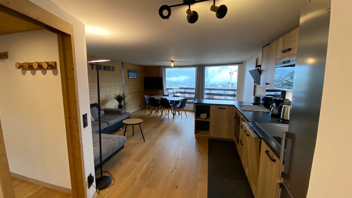 Sehr schöne Wohnung, kürzlich renoviert, außergewöhnliche Lage mit Blick auf den See von Tignes. Tolle Aussicht - sehr gut ausgestattete Wohnung, aller Komfort. Skikeller, ausgestattete Küche: Kaffeemaschine, Geschirrspüler, Mikrowelle, Induktionsherd, Backofen, Raclette, Fondue-Kit + Sat-TV. Bäckerei, Eislaufbahn, Skischule, Supermarkt, Restaurants im Umkreis von 20 m Das Wesentliche in der Nähe :-) Vermietung nur von Sonntag bis Sonntag... das Beste, um Trafic zu vermeiden