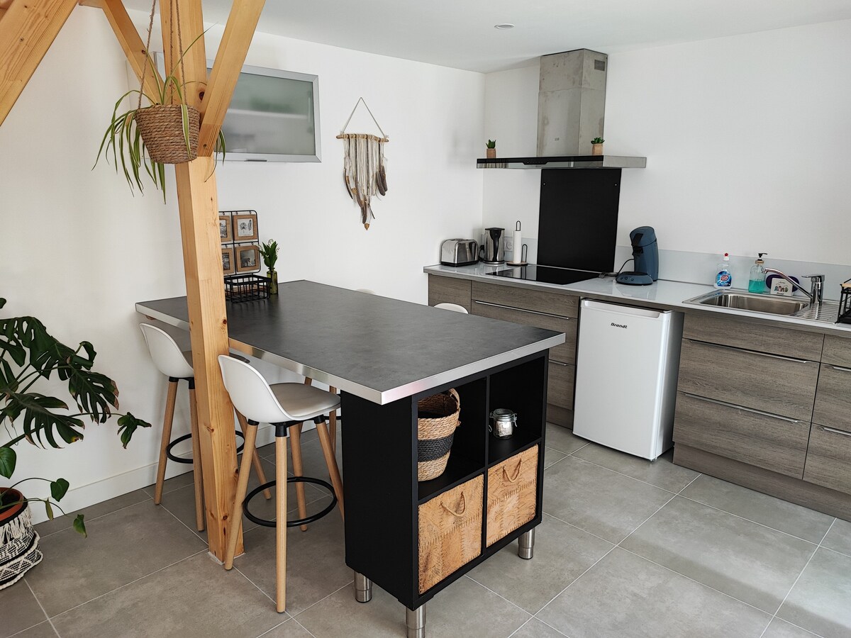Im Weinberg von Nantes und nur einen Katzensprung vom Dorf entfernt. Wir begrüßen Sie in dieser Wohnung (35 m2), die in einer grünen und ruhigen Umgebung mit direktem Zugang zum Wanderweg liegt. Eigener Eingang mit Terrasse und privatem Parkplatz 1 Wohnzimmer mit Einbauküche, Schlafsofa (Lattenrost) die Betten werden vor Ihrer Ankunft gemacht. 1 Schlafzimmer mit 1 Doppelbett 1 Duschbad mit WC 25 km von Nantes, 15 Min. von Clisson, 7 Min. von Vallet, 10 Min. vom Zoo La Boissiere du Doré, 45 Min. vom Puy du Fou...