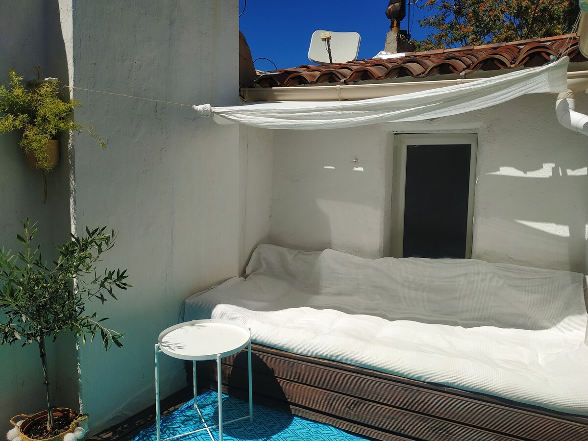 Escape to the breathtaking Blue Coast and experience Provence in a studio thoughtfully designed by architect owners. Wake up to stunning hill & sea views from your private terrace and enjoy all the modern comforts. Walk to the sandy beach and explore the coves with a complimentary sea kayak. Conveniently located 10 minutes from the local train station and 25 minutes from Marseille airport with free parking. An unforgettable adventure awaits on the Blue Coast of Provence!