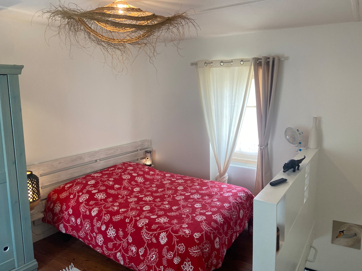 Chambre, salledebain, wc et petit coin cuine. Indépendant, proche centre ville, commerces et mer (accès à pieds, moins de 10 min). Endroit calme, refait à neuf et équipé. Route facile d'accès pour stationnement. Wi-Fi gratuit. Possibilité de fumer à l'extérieur du logement. La cour est commune, avec la maison des propriétaires. Arrivées et départs libres (boîte à clé sécurisée)