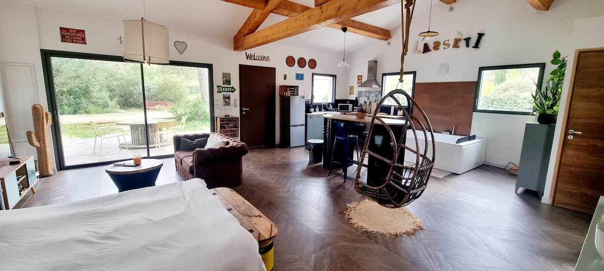 Zwischen Meer und Fluss, vom Gesang der Zikaden und Vögel eingelullt, kommen Sie und entspannen Sie sich in diesem kleinen Paradies, wo Sie einen privaten Pool und einen beheizten Whirlpool für 8 Personen im Herzen eines exotischen Landschaftsgartens, der von einem Fluss begrenzt wird, genießen können. Tapetenwechsel und Entspannung garantiert!