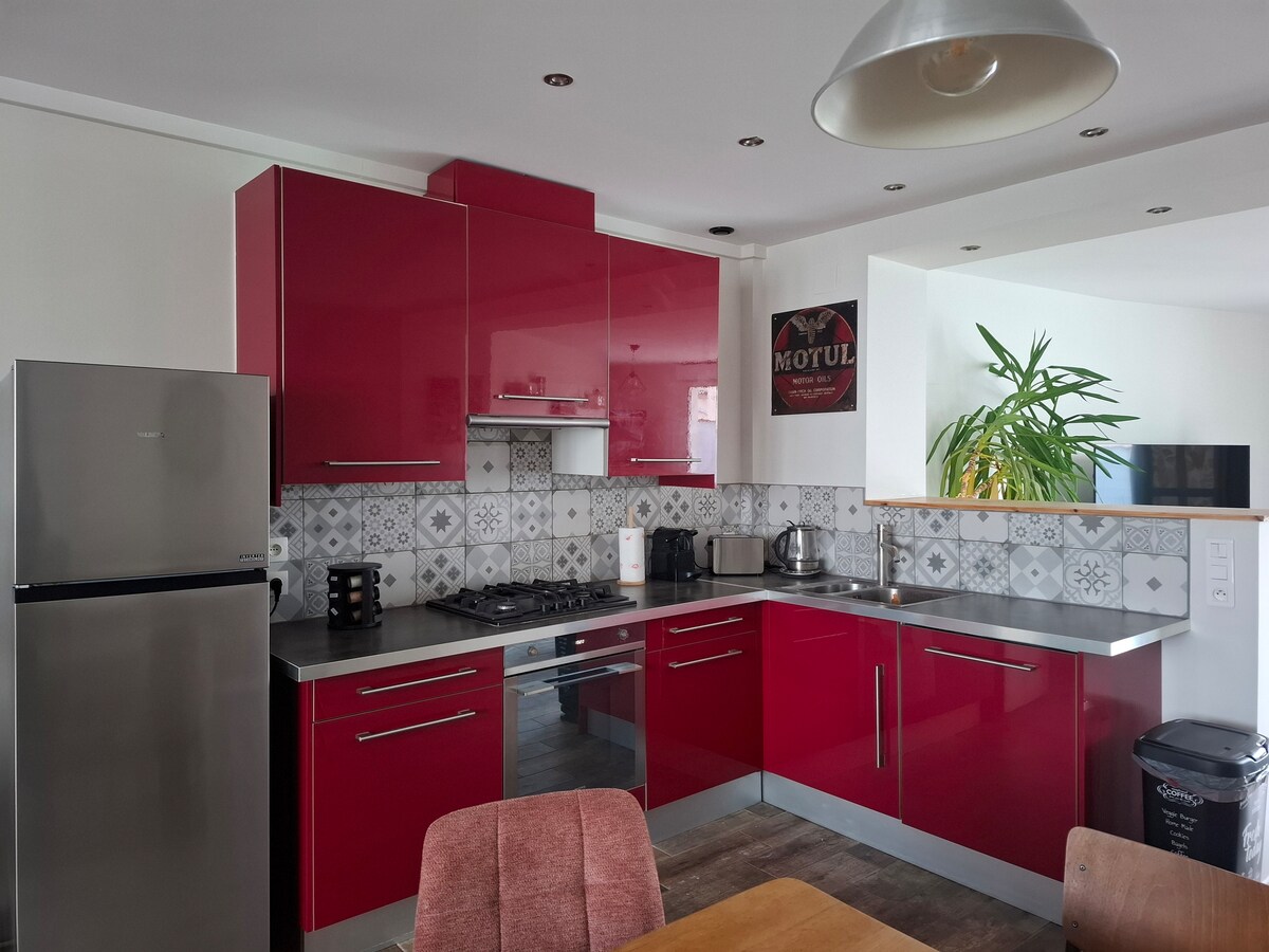 Situé à 10 minutes de Reims, notre appartement est composé d'une grande pièce à vivre comprenant cuisine équipée, coin repas, salon avec canapé convertible, télévision (écran plat) et WIFI. Une chambre équipée d'un lit de 160 x 200 et d'une salle de bain avec WC séparé. De plus, vous bénéficiez d'un parking sécurisé (véhicule et vélo) à l'intérieur de notre propriété. Pour des raisons sanitaires et d'allergies, nos amis les animaux de compagnie ne sont pas acceptés dans ce logement.