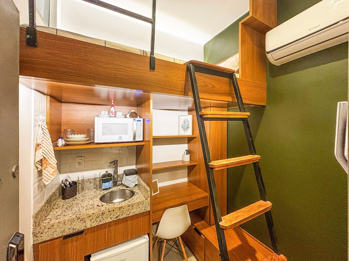 Modernes, architektonisch gestaltetes Studio im Herzen von Leblon Tritt ein in einen stilvollen Rückzugsort im Zentrum von Leblon! Dieses neu renovierte Studio, das von einem renommierten Architekten sorgfältig entworfen wurde, bietet einen schicken und komfortablen Rückzugsort mit: • Geräumiges Queensize-Bett: Genieße einen erholsamen Schlaf auf einem luxuriösen Queensize-Bett. • All-Inclusive-Einrichtungen: Voll ausgestattet zu deinem Komfort, einschließlich einer modernen Küche, einem makellosen Badezimmer und mehr. • High-Speed-WLAN: Bleibe schnell und zuverlässig in Verbindung
