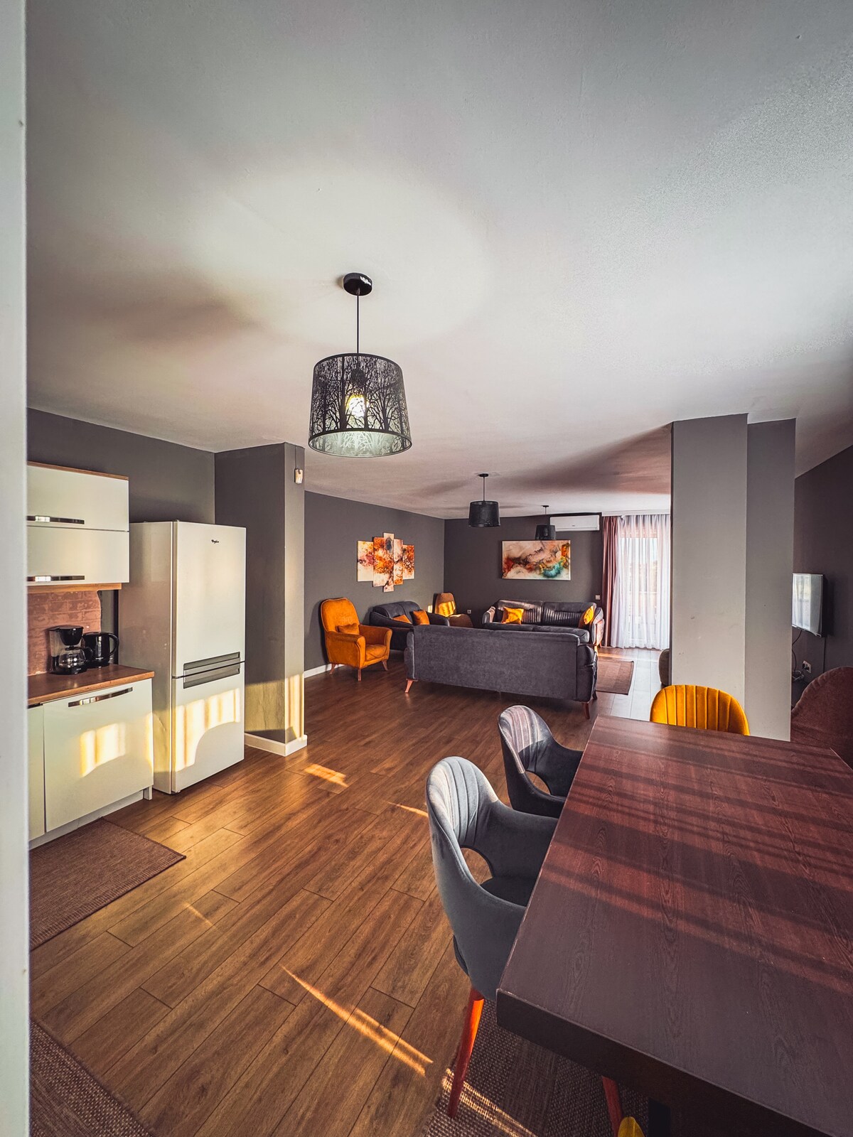 Das Penthouse von Siera liegt im Herzen von Pristina und bietet Platz, Gemütlichkeit und alles, was du brauchst, um dich wie zu Hause zu fühlen. Das Penthouse ist ideal für Paare, Freunde und Familien. Es ist 140 m² groß und verfügt über einen 70 m² großen Balkon, der sich ideal für deinen Morgenkaffee, die Arbeit am Nachmittag, das Grillen am Abend und gesellige Zusammenkünfte eignet. Hauptattraktionen der Stadt (zu Fuß erreichbar): Stadtplatz – 2 Min. Stadtpark – 2 Min. Denkmal für Neugeborene – 10 Min. Stadtmuseum - 10 Min. Kathedrale Mutter Teresa – 10 Min.