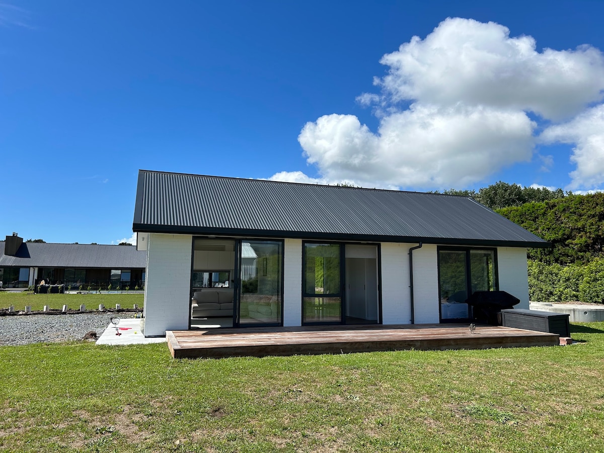 Gemütliches und privates Ferienhaus mit herrlichem Blick auf den Bauernhof und einem holzbefeuerten Zedern-Outdoor-Spa - perfekt zum Entspannen unter den Sternen. Genießen Sie einen offenen Wohnbereich, ein bequemes Sofa, eine gut ausgestattete Küche, ein Kingsize-Bett und Panoramafenster. Wache mit Blick auf den Sonnenaufgang auf, schlendere durch das Anwesen oder besuche die nahegelegenen Strände und den Matakana Farmers' Market. Ideal für einen romantischen Kurzurlaub oder einen ruhigen Rückzugsort. Nur eine kurze Autofahrt entfernt liegt das charmante Dorf Matakana und der wunderschöne Omaha Beach.