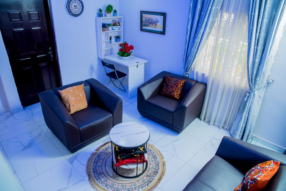 Ein zweites Zuhause im Herzen von Lekki Phase 1. Die Unterkunft befindet sich abseits der Straße 14, in der gleichen Straße wie das Dowen College. Diese Unterkunft verfügt über eine garantierte reguläre Stromversorgung (rund um die Uhr gegen eine zusätzliche Gebühr ) und sauberes Wasser. Die Umgebung ist sicher und sehr ruhig. Damit ich es nicht vergesse, es gibt DStv!