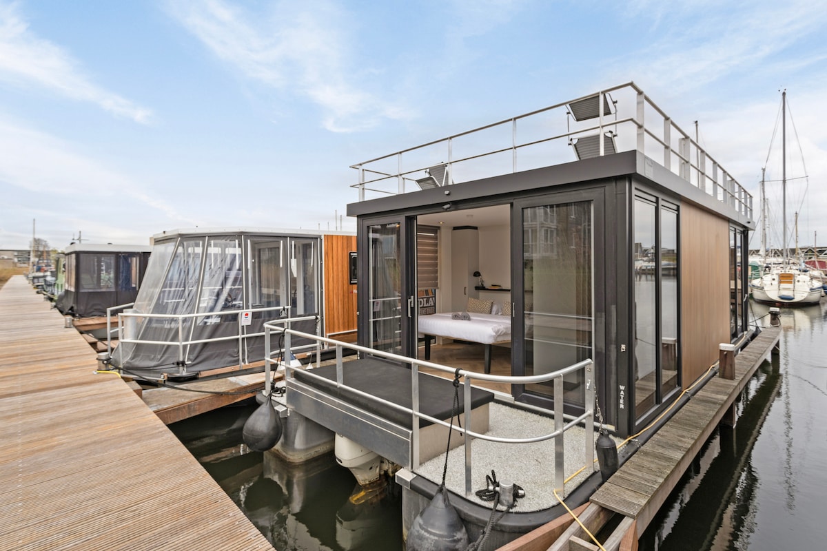 Luxe boothuis in de haven van Harderwijk
