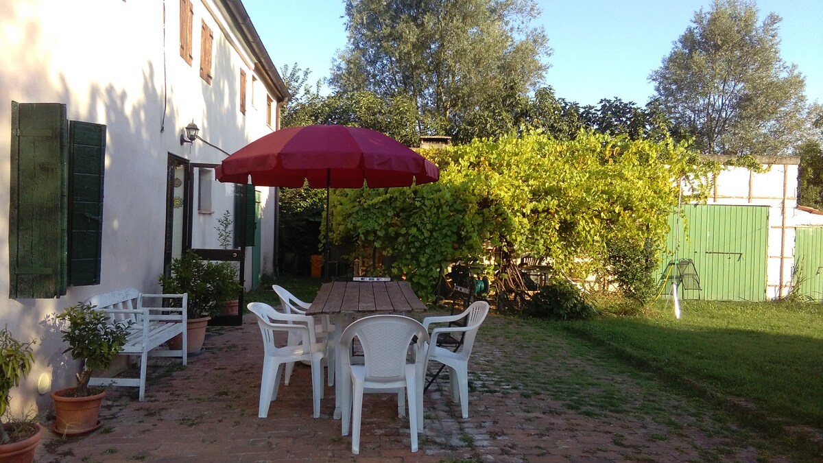 neu renovierte Dependance, funktional und gemütlich, im Landhausstil eingerichtet und mit einem schönen Park ausgestattet. Möglichkeit, sich im Garten oder auf der Terrasse zu entspannen. Sat-TV, kostenloses WLAN und Fahrräder stehen zur Verfügung. Ideal für Einzelpersonen oder Familien mit Kindern. Vierbeiner sind willkommen. Informationsmaterial über die Region und ihre typischen Produkte steht ebenfalls zur Verfügung. Auf halbem Weg zwischen Ferrara und Rovigo, 3 km von der palladianischen Villa Badoer entfernt.