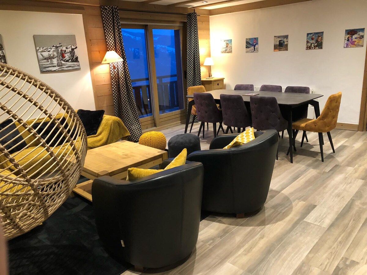 Dieses gemütliche Chalet für 1–8 Personen, das mit dem Meribel-Label ausgezeichnet wurde, bietet einen einfachen Zugang zu den Pisten über den Morel, der 150 m zu Fuß entfernt ist, und die Rückkehr auf Skiern über die Hulotte-Piste und von der kostenlosen Shuttle-Haltestelle. Das Zentrum des Resorts liegt 10 Gehminuten entfernt. Zen-Atmosphäre, gemütlich modern und bergig zugleich. Ganz neu, es wartet nur auf dich. Die Schlafzimmer und das Wohnzimmer verfügen über einen Fernseher, WLAN-Zugang und Telefonladegeräte. Am Abend ist es gut, sich am Kamin zu entspannen. Ein kostenloser Parkplatz.
