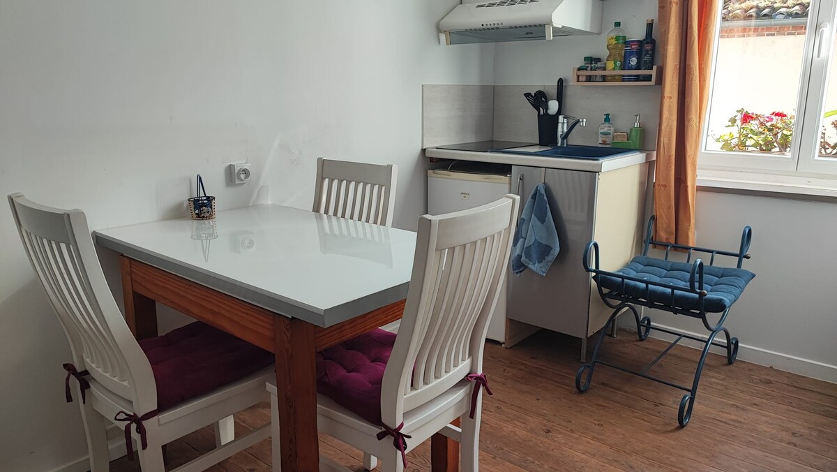 Ideal gelegen zwischen Puy du Fou, Futuroscope, Marais Poitevin und dem Loire-Tal... Genießen Sie eine Nacht oder einen ruhigen Aufenthalt auf dem Land... Neues unabhängiges Studio mit viel Charme, für 2 Personen: 1 Doppelbett, 1 Duschbad mit WC, kleine Sitzecke, Einbauküche (Induktionskochfeld, Kaffeemaschine, Mikrowelle, Kühlschrank), Eingangsbereich.