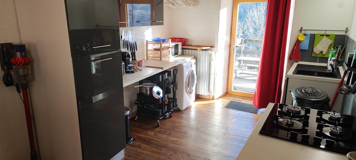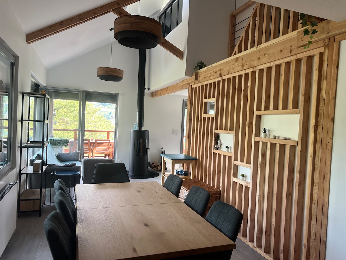 Neue Unterkunft, modern und gemütlich. Ideal für 2 Paare oder eine Familie mit 3 Kindern. Es hat 2 Schlafzimmer mit einem Badezimmer, ein großes Wohnzimmer mit Küche, ein Zwischengeschoss mit TV-Ecke und eine Terrasse mit Nordic Bad mit freiem und privatem Zugang. Die Betten sind bei Ankunft bezogen und Handtücher werden zur Verfügung gestellt. Das Chalet befindet sich im Weiler Les Marches, 3 km vom Bahnhof entfernt. Wir stellen Ihnen einen überdachten Parkplatz im Zentrum zur Verfügung.