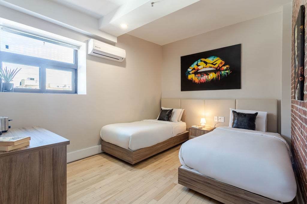 Dieses elegante Hotelzimmer verbindet Stil und Komfort und verfügt über zwei weiche Einzelbetten mit hochwertiger Bettwäsche – ideal für Freunde oder Alleinreisende, die sich einen Raum teilen. In einem der lebendigsten Viertel von Montreal gelegen, sind Sie nur wenige Schritte von Cafés, Bars und kulturellen Perlen entfernt. Die Gäste haben auch Zugang zu einer einladenden Lobby-Lounge und einem geräumigen Keller mit gemütlichen Sitzgelegenheiten, einem Billardtisch und einem Großbildfernseher – perfekt für Arbeit oder Entspannung.