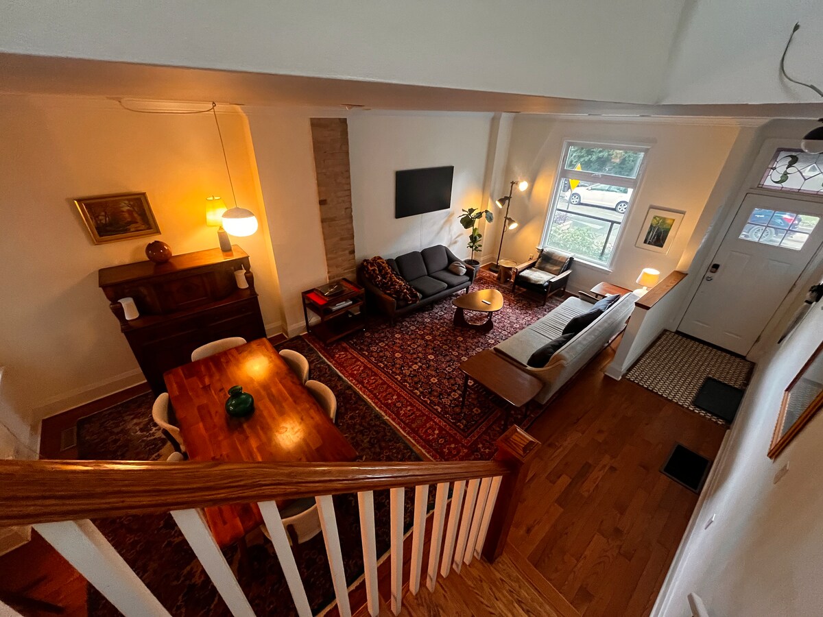 Einzigartiges Stadthaus direkt neben dem Greenwood Park, wo der Leslieville Farmer's Market von Mai bis Oktober stattfindet. Perfekt für Familien mit Kindern und Hunden, da der Hundepark weniger als 1 Minute entfernt ist. Bequeme Anbindung an die Restaurants in der Queen St. und die Straßenbahn ist 5 Minuten entfernt. In 15 Minuten in der Innenstadt von Toronto. Kostenloser Parkplatz hinter dem Haus. Entdecke alles, was Leslieville zu bieten hat.