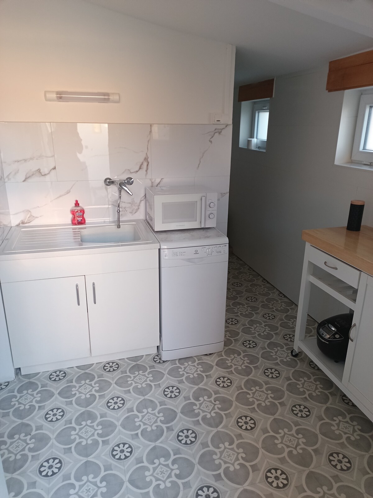 Entspannen Sie sich in dieser ruhigen und eleganten Unterkunft. Möbliertes und voll ausgestattetes Haus, das ein Wohnzimmer mit folgenden Einrichtungen umfasst: eine Sitzecke mit TV und einem Pelletofen, ein Essbereich mit voll ausgestatteter Küche, Backofen, Mikrowelle, Kühlschrank, Filterkaffeemaschine, Wasserkocher und Waschmaschine, ein Badezimmer mit Dusche, Waschbecken und WC, und einem Schlafbereich mit einem Doppelbett. Sie profitieren von einem angenehmen und gepflegten Außenbereich mit Gartenmöbeln und Grill. Haustiere sind nicht erlaubt.