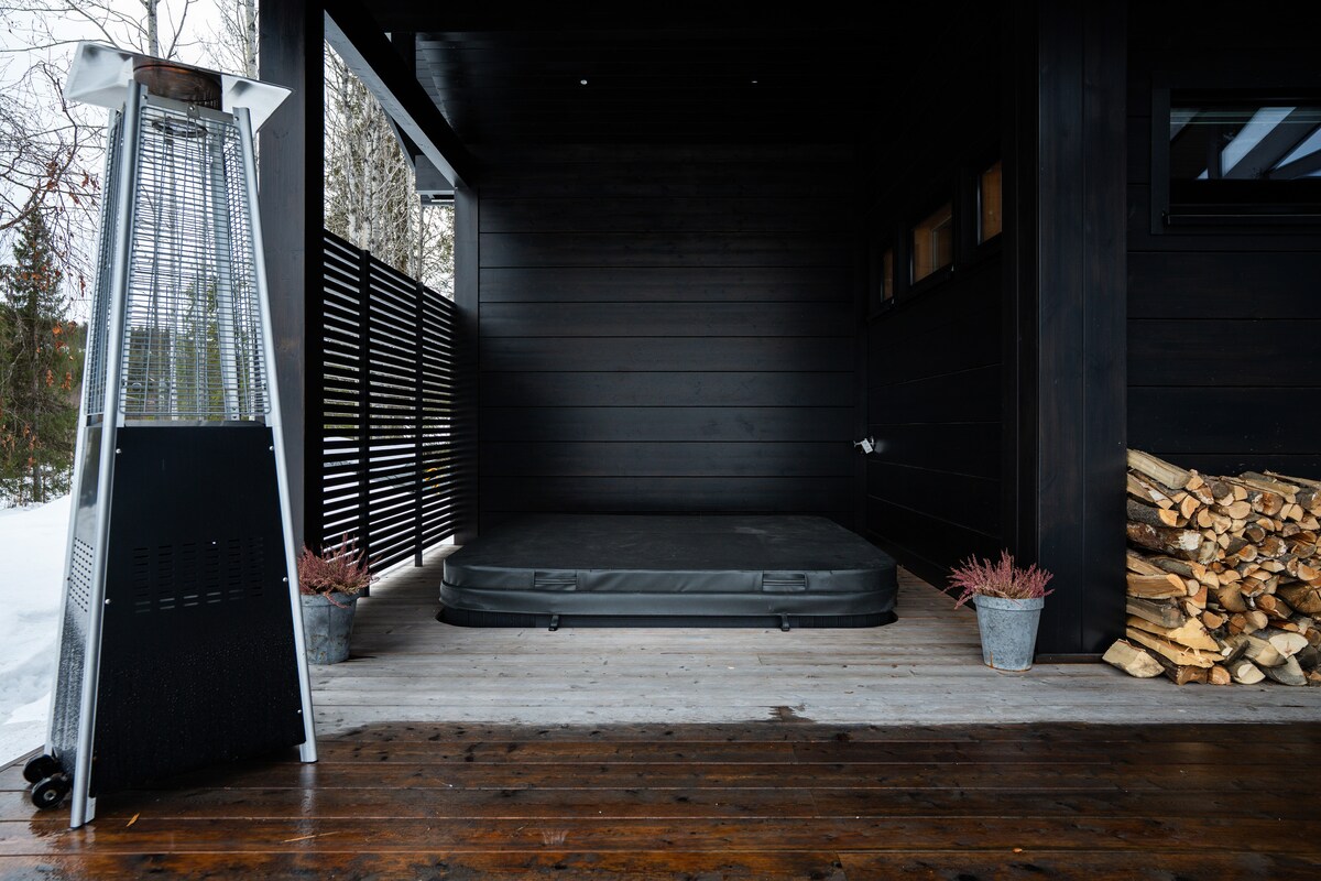 Villa KaLi B bietet hochwertige Ferienunterkünfte in der Nähe des Zentrums von Levi. Die großen Fenster der Villa bringen die Natur ins Wohnzimmer und öffnen sich zu einer wunderschönen Waldlandschaft. Auf der geschützten Terrasse können Sie sich in Ruhe im Whirlpool entspannen, und im Inneren finden Sie eine moderne, luxuriöse Umgebung für eine tägliche Pause und einen längeren Urlaub. Diese Wolle verbindet stilvollen Komfort und die Ruhe der Natur Lapplands perfekt. Auch ein Skiwartungstisch! Die Gebühr für den Whirlpool beträgt 100 € pro Buchung.