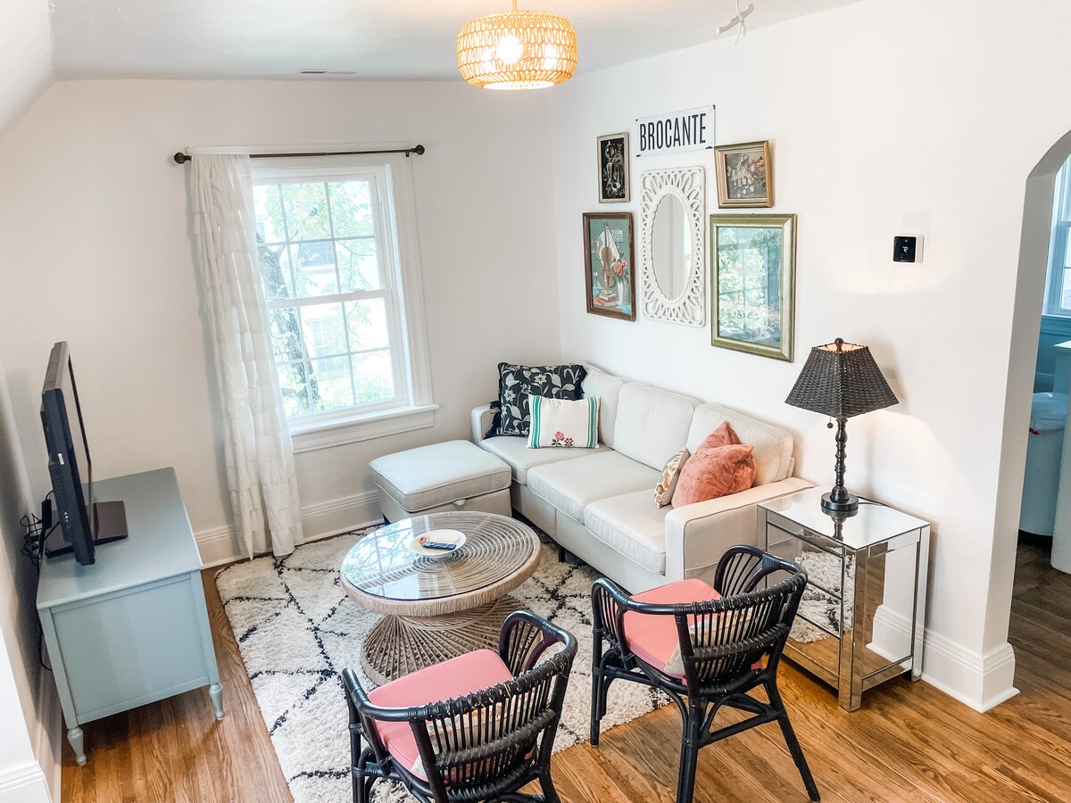 Unsere Sweet Escape Studio-Wohnung ist eine süße Zuflucht vor der Hektik und Eile des Lebens. Gelegen in der süßen Stadt Columbia, Tn., die von Southern Living zu den „Top 10 Best Small Towns“ ernannt wurde. Unser Viertel liegt in der Nähe des Duck River und nur wenige Minuten von Downtown entfernt. Es gibt viel zu sehen und zu erkunden, von Kajakfahren und Wandern bis hin zu Essen und Einkaufen. Das Studio befindet sich auf der Rückseite unseres Grundstücks mit separatem Parkplatz und bietet viel natürliches Licht und die charmante Terrasse zum Entspannen.