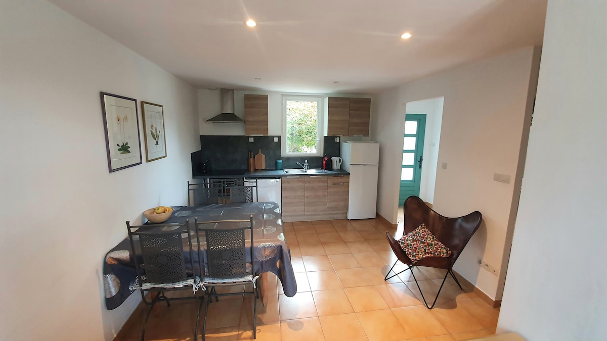 Situé sur un vaste terrain clôturé et arboré à seulement 5 minutes d'Anduze en voiture, ce grand studio loft de 60 m² offre un cadre idyllique pour se ressourcer. Entre détente, calme et sérénité, c'est le point de chute idéal après vos balades cévenoles. Jusqu'à 4 personnes (Lit King Size + Canapé-lit Queen Size). Espace cuisine équipé avec petite table à manger. Grande piscine privée (Mai-Oct ), terrasse et jardin paisible. Ping-pong, trampoline et balançoire à disposition. Parking sécurisé.