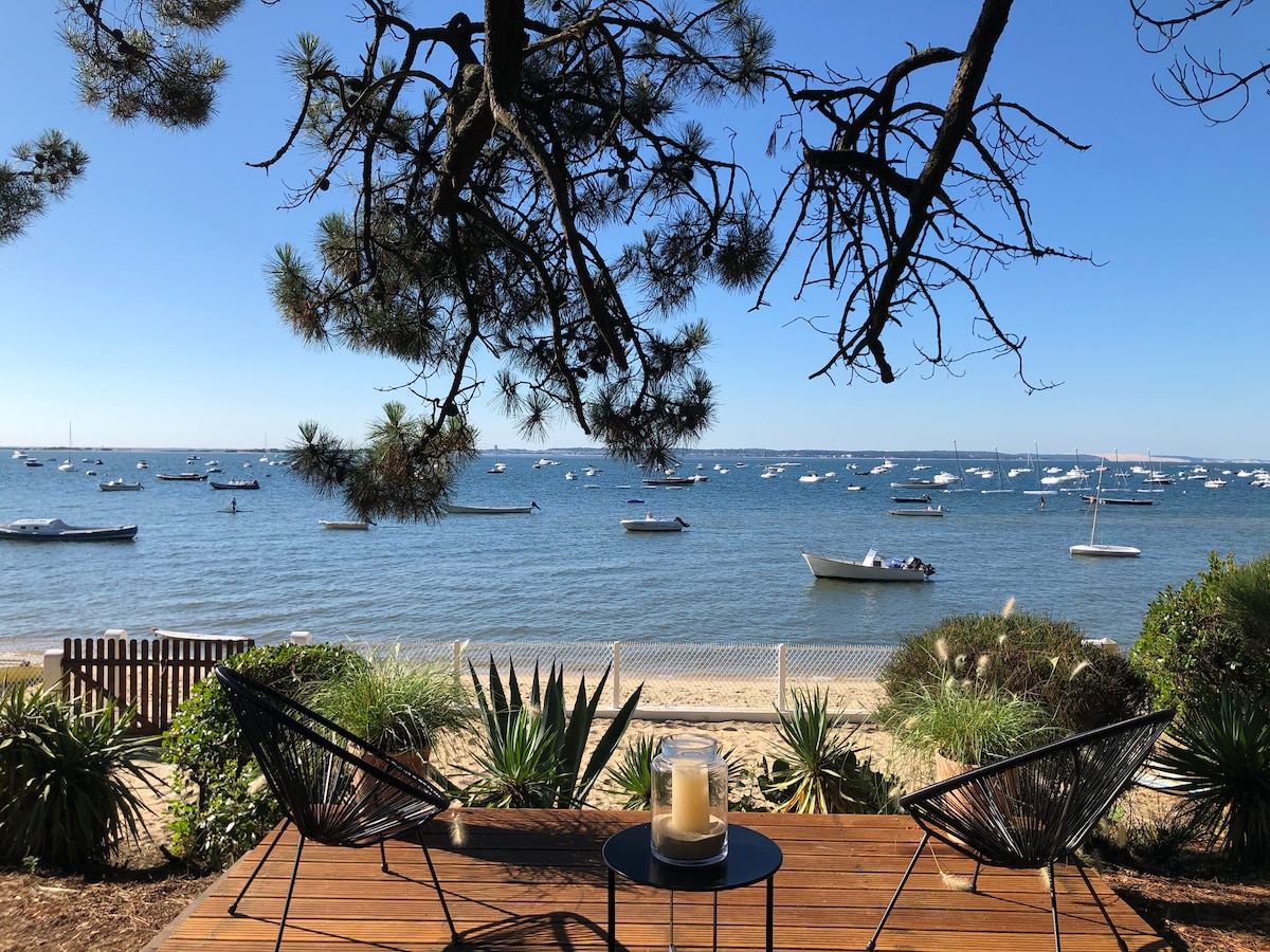 45 Minuten von BORDEAUX , 50 Meter vom Strand entfernt Angenehmes Ferienhaus, bestehend aus 3 Schlafzimmern (2 große Schlafzimmer mit einem Bett von 140 cm und 1 Schlafzimmer Kabine mit einem Bett von 90) + Terrasse 18M2 - 1 Badezimmer und 1 Badezimmer mit ebenerdiger Dusche - Bootsfahrt, Austernverkostung und Besuch des Austernhafens, Restaurants am Meer und Entdeckung der Halbinsel CAP FERRET.