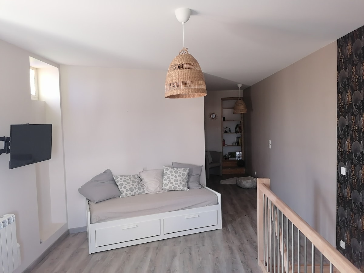 Logement charmant, en duplex avec tout le confort nécessaire pour passer un bon moment. Avec un extérieur pour profiter pleinement. Le logement fait 50m2 En bas vous trouverez une cuisine tout équipée et en haut vous disposerez d'un coin nuit avec un lit tout confort (200/200) ainsi qu'un canapé lit pouvant accueillir 2 autres personnes. Vous trouverez aussi un coin télé, jeux et bibliothèque. Quartier calme. Draps/serviettes de bain fournis. Wifi. Netflix. Chaînes TV freebox.