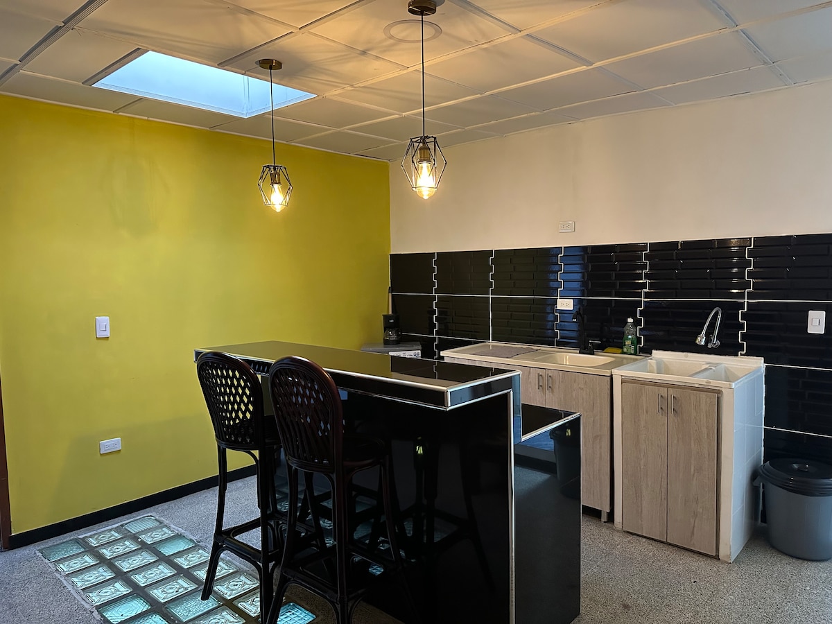 Apartaestudios con todas las comodidades Ideal para parejas, familias o grupo. Cocina, wifi, agua caliente, independiente, parqueadero privado. La ubicacion es excepcional, muy cerca al comercio y sobre la misma calle hay supermercado, farmacia, corresponsal bancario y tienda de ropa. Una zona muy central, tranquila y segura.