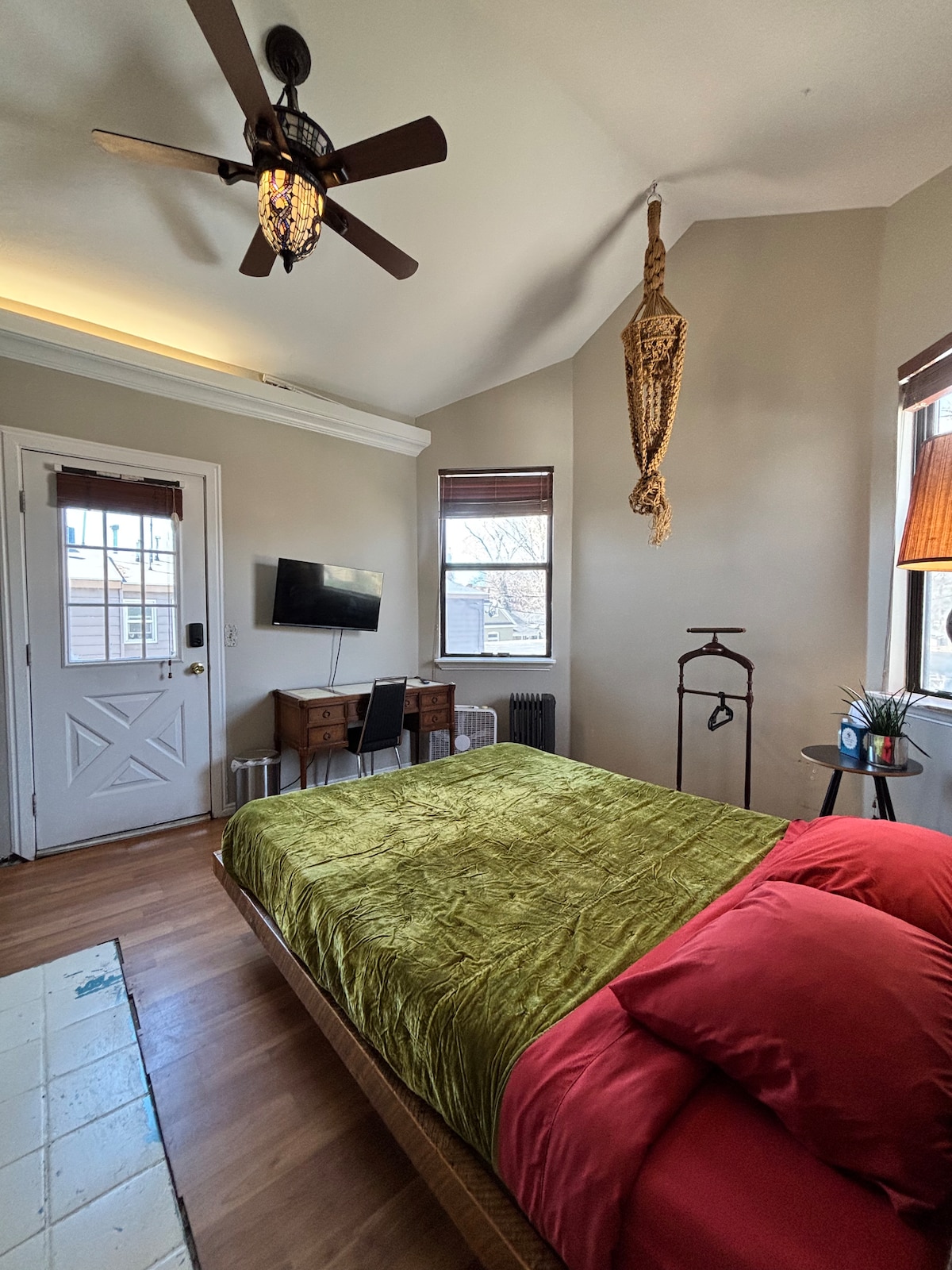 Halte es einfach an diesem ruhigen und zentral gelegenen Ort. Schönes 600 Quadratfuß großes Studio in meinem Garten. Geräumig für 2 Personen, komfortabel für 4 Personen & Hotspot für eine Gruppe mit kleinem Budget. Einzigartiger offener Loft-Stil. Mit einer ziemlich wackligen Treppe. Oben im Loft gibt es ein Queensize-Bett und ein Doppelbett/Couch. Es gibt auch einen Aufbewahrungsort für Kleidung. Unten gibt es einen großen Futon/Couch. Privates Bad und Dusche. Kochnische mit grundlegenden Annehmlichkeiten. (Kein Grill oder Backofen).