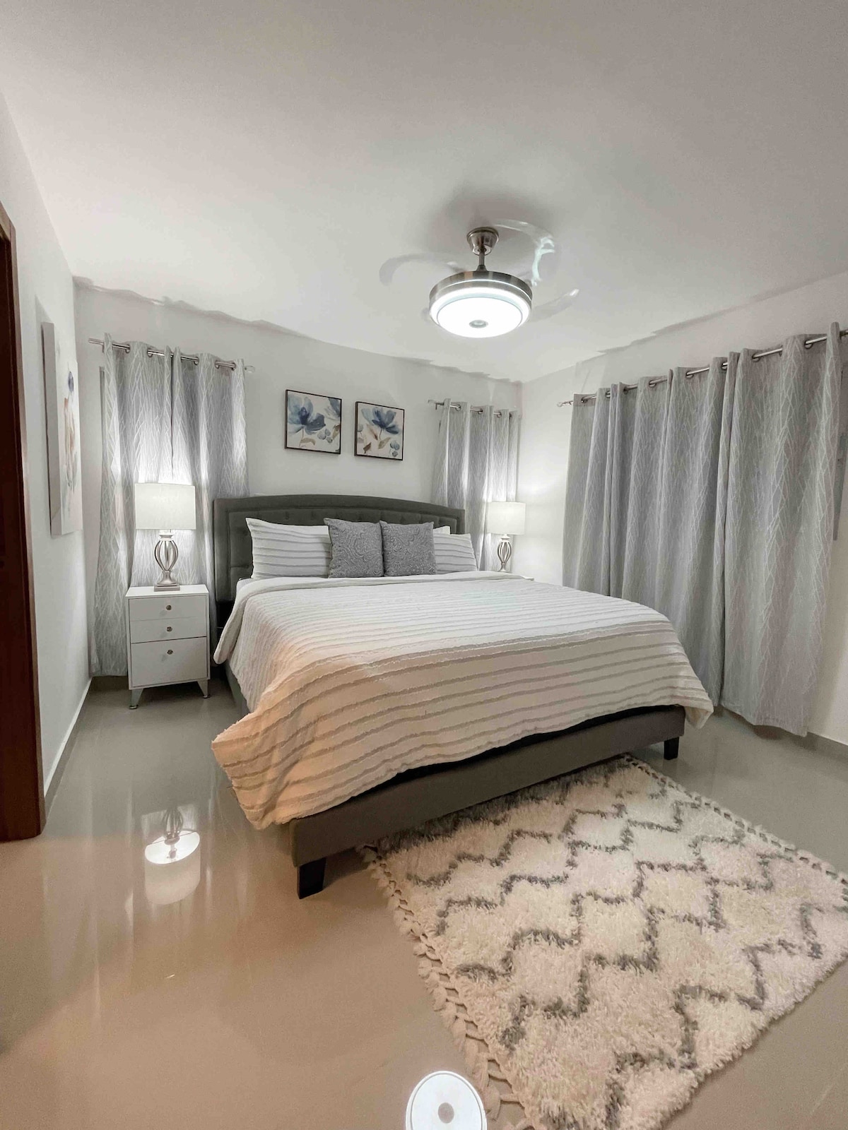 Entspannen Sie sich in diesem einzigartigen und ruhigen Urlaub, erleben Sie ein unvergessliches Erlebnis in unseren komfortablen und modernen Einrichtungen. Klimaanlage in zwei Zimmern, ein Deckenventilator im dritten Zimmer, zwei kostenlose Parkplätze, kostenloser Netflix-Service, Amazon Video und Disney+ für die Freude der besten Filme und Unterhaltungsserien sowie eine PS4-Videospielkonsole für deinen Spaß. Ein paar Minuten vom Zentrum von Santiago City und dem Flughafen Cibao (STI) entfernt.