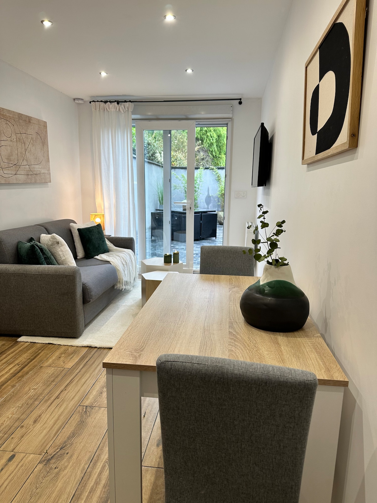 Nur 10 Minuten von LILLE entfernt, vor den Toren des Waldes von Phalempin, genießen Sie unser komplett renoviertes Gästezimmer mit hochwertigen Dienstleistungen und separatem Eingang. Sie verfügen über ein Wohnzimmer mit Schlafsofa, Flachbildfernseher und kostenlosem WLAN, das zu einer ausgestatteten Küche hin offen ist. Wunderschönes Badezimmer aus gewachstem Beton und ebenerdiger Dusche. Das Zimmer verfügt über ein Kingsize-Bett mit Ankleidebereich und Futonsessel sowie einen Flachbildfernseher.
