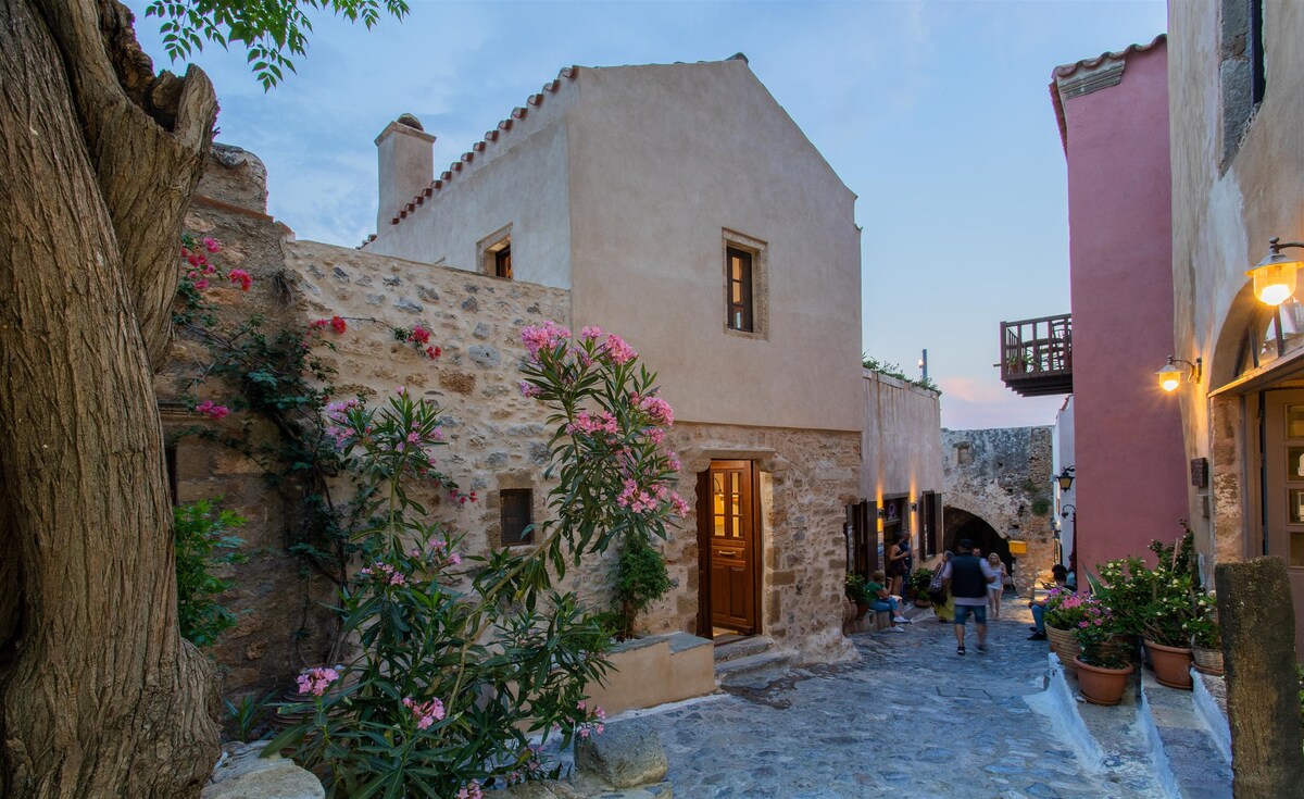 Genieße einen Balkon mit Meerblick und einem privaten Innenhof innerhalb der Festungsmauern von Monemvasia Rock. Erlebe magische Sonnenuntergänge, spaziere mit Stein gepflasterte Gassen, genieße griechische Küche und schaffe bleibende Erinnerungen. Zu den nahegelegenen Stränden gehören Monemvasia (2 km), Pori (6 km) und Abelakia (7 km). Kostenloses WLAN für Gäste. Frühstück auf Anfrage gegen einen Aufpreis verfügbar.