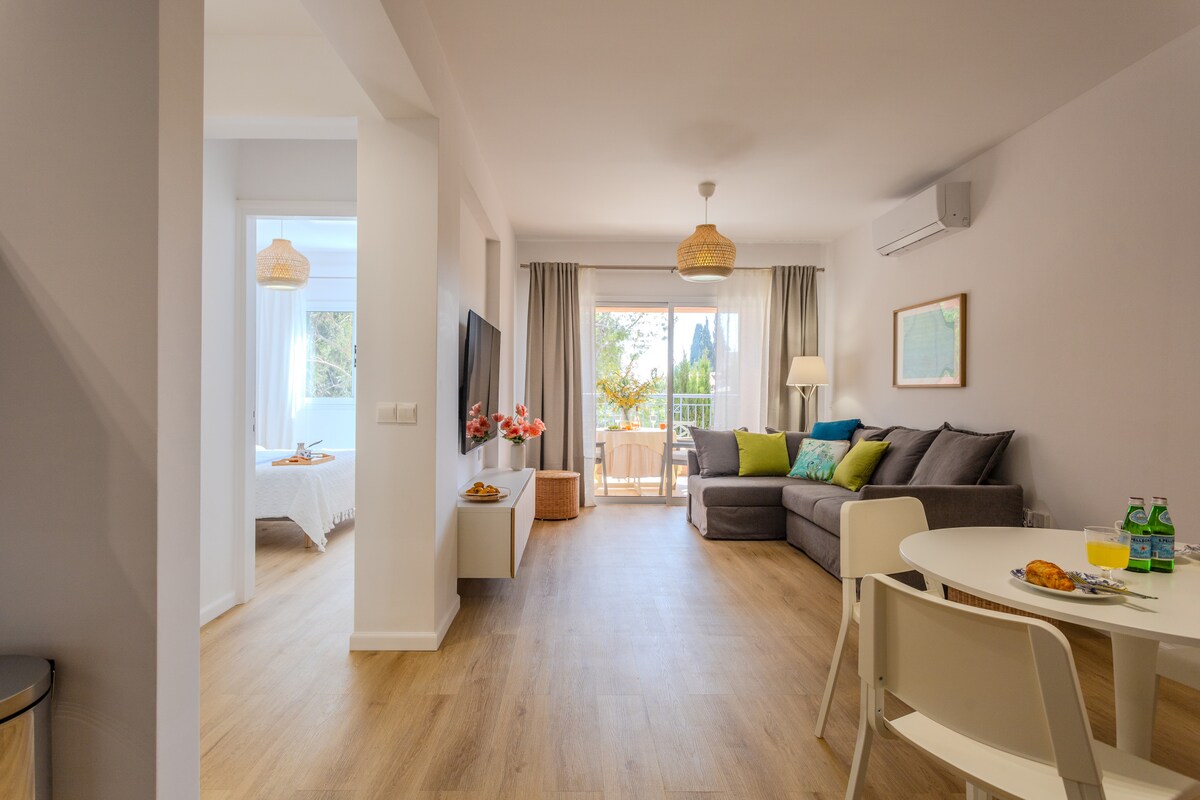 Olympische Wohnung mit Poolblick, in der Nähe von Meer und Stränden