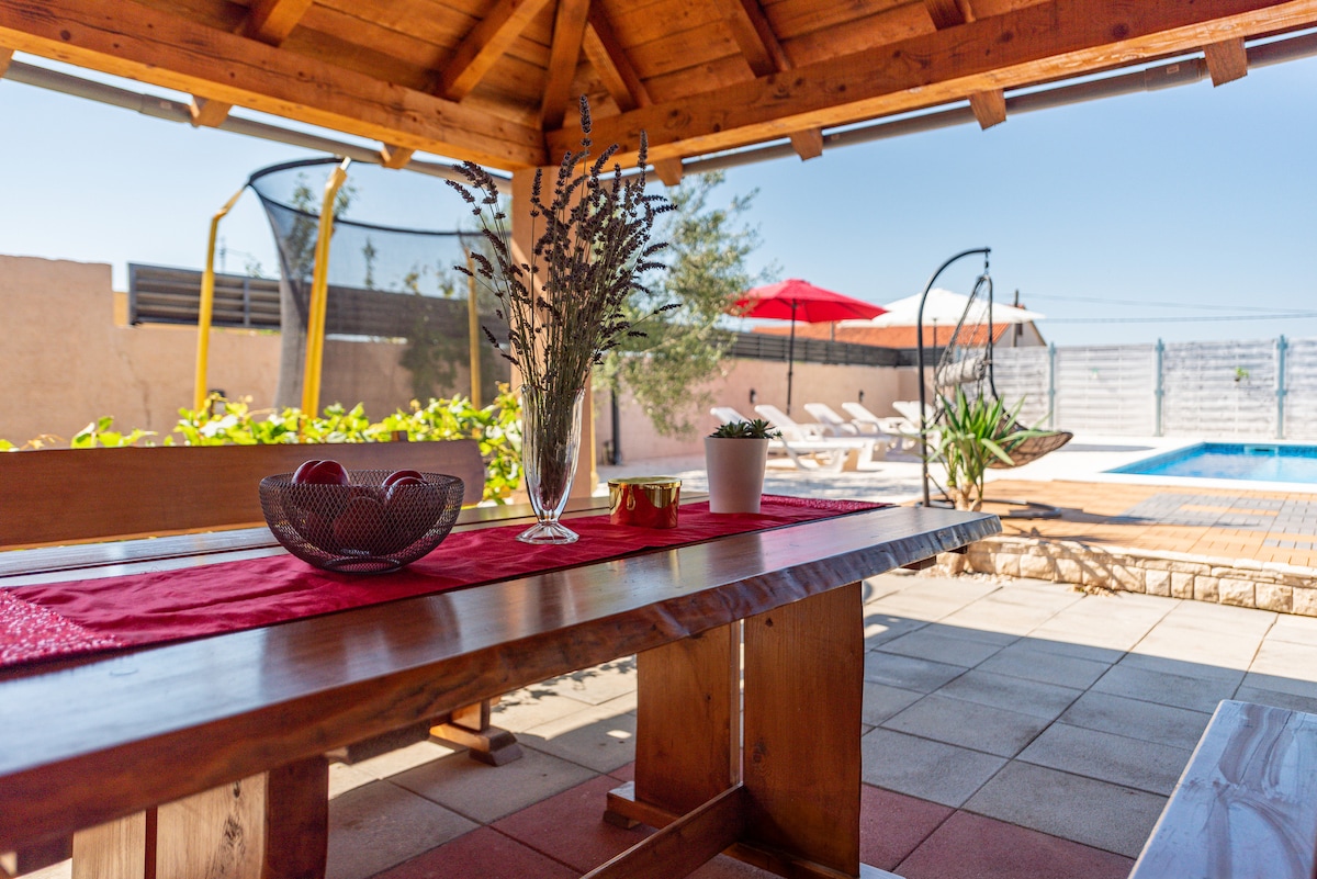 Ein großer Pool, der in Kiefern versteckt ist, und ein atemberaubender Blick auf die Marina Bay und alle mitteldalmatinischen Inseln ist etwas, an das du dich dein ganzes Leben lang erinnern wirst. Unsere Unterkunft, die sich in den Bergen 6 km über der Adria befindet, ist genau das, was du brauchst, um deine Batterien aufzuladen. Die ersten und einzigen Nachbarn sind 500 Meter entfernt, was bedeutet, dass Sie absolute Privatsphäre haben. Wenn Sie einen aktiven Urlaub verbringen möchten, können Sie: Fußball, Basketball, Boccia und Kinderspielplatz – alles auf unserem Hof. Beheizter Whirlpool