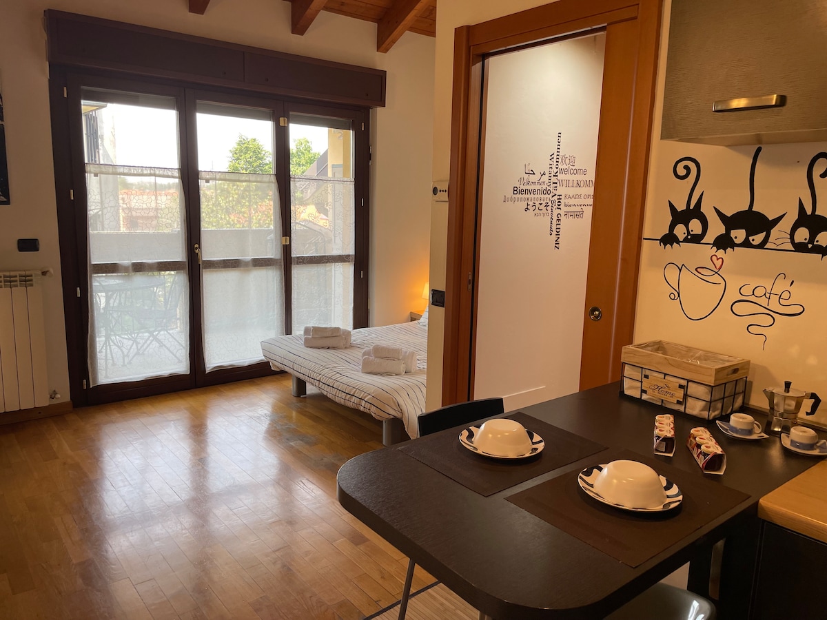 Willkommen in der Casetta Papillon 🦋 Zweizimmerwohnung mit charakteristischen Holzbalken, mit allen Annehmlichkeiten (voll ausgestattete Küche, Waschmaschine, Klimaanlage, WLAN). Im Wohnbereich stehen neben einem bequemen Tisch auch ein Sofa und ein Fernseher zur Verfügung. Im Schlafbereich ein bequemes Doppelbett. Private Box für Gäste! (Abmessungen 2,50 x 5,40) 10 Minuten vom Autodromo di Monza und 15 Minuten zu Fuß vom Bahnhof entfernt (in 15 Minuten sind Sie in Mailand).