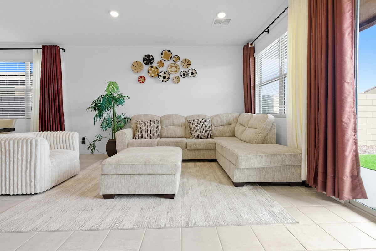 • 2-stöckiges Haus: 3 Betten, 2,5 Badezimmer. 1 King, 2 Queen • Wohnzimmer mit 70-Zoll-Fernseher, Büro + Loft • Feuerstelle + Gemeinschaftspool Unterhaltung • 20 Minuten zur Innenstadt von Phoenix • 20 Minuten zum Westgate Entertainment District Golfplätze in der Nähe, um nur einige zu nennen • Golfclub von Estrella • Palm Valley Golf Club • Sundance Golf Club • Verrado Golf Club • Wigwam Golf Club Sehenswürdigkeiten • Minuten zum Estrella Mountain Regional Park • 16 Meilen zum White Tank Mountain Regional Park