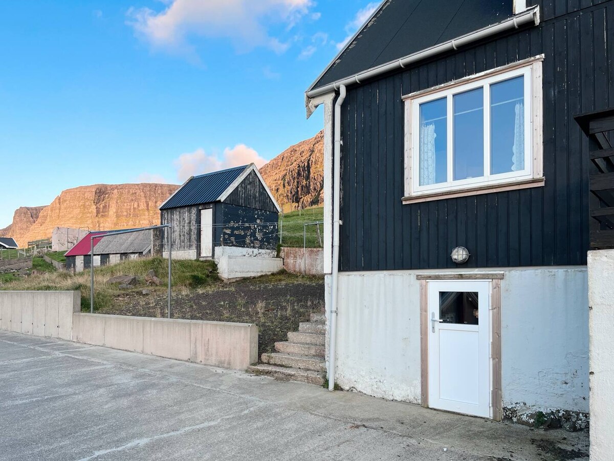 Unique apartment in Velbastaður a 10-min drive away from Tórshavn with a stunning ocean view towards Hestoy and Koltur. The apartment is built as an annex beside our house, and is for your personal use only and has a private entrance.